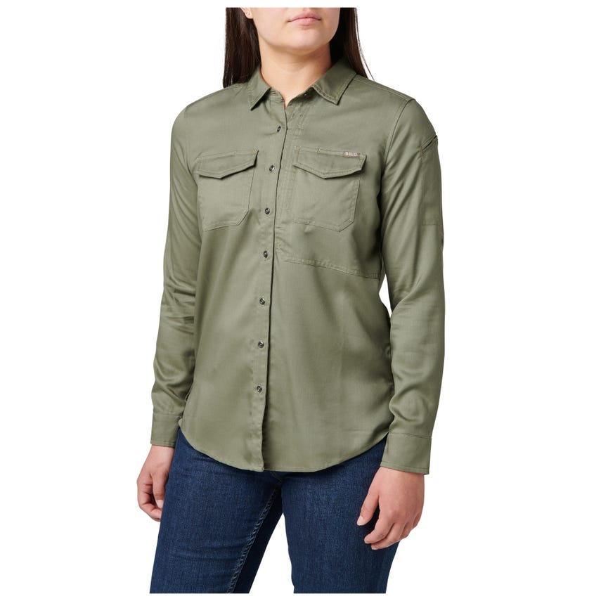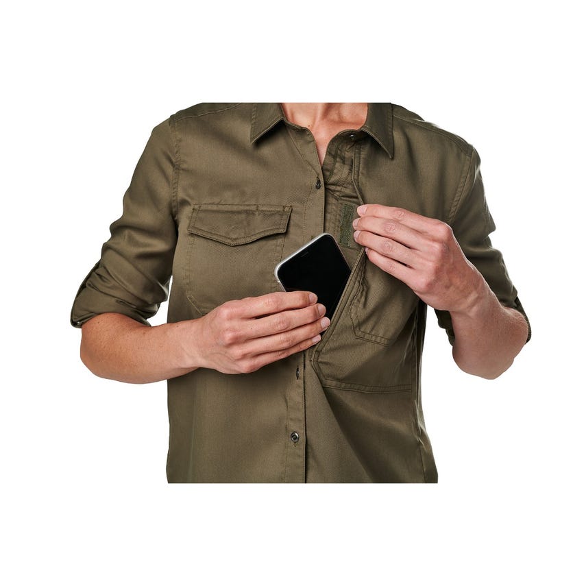 Military inspired, the Nikita is designed to help you stay in your comfort zone with an enzyme washed Tencel® fabric for easy wear. But make no mistake, this shirt is ready for EDC duty, featuring 5.11'rs Ready Pocket™ at the left chest and patented pen pockets on the left sleeve. And when the situation requires you to roll up your sleeves, whether you're at the range or in a conference room, the button and fabric attachment keep them up and out of your way.