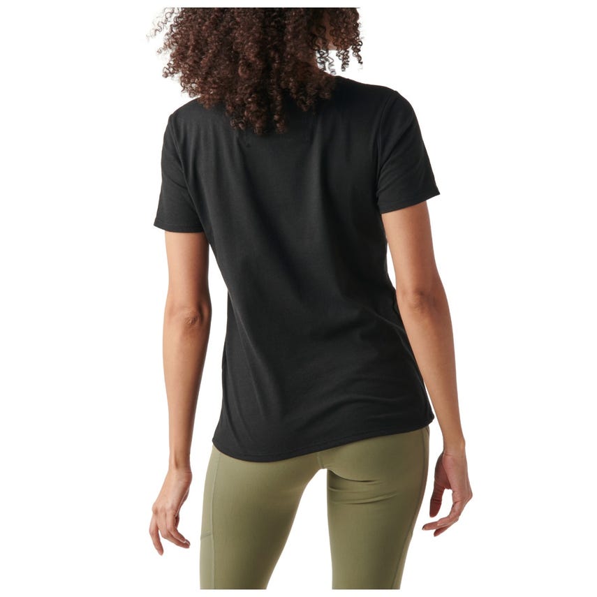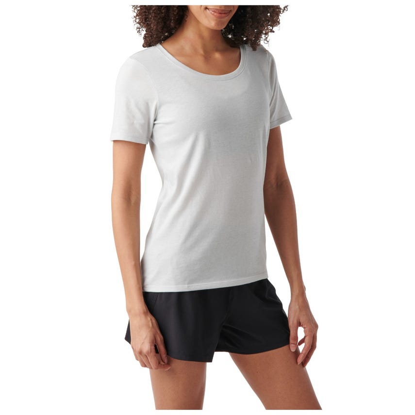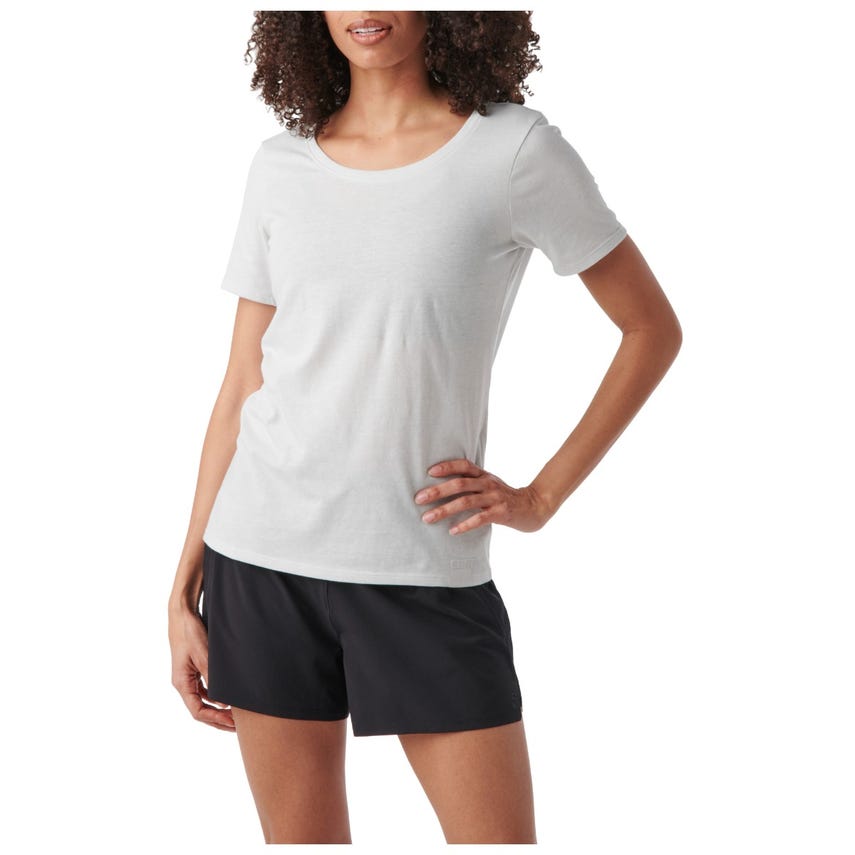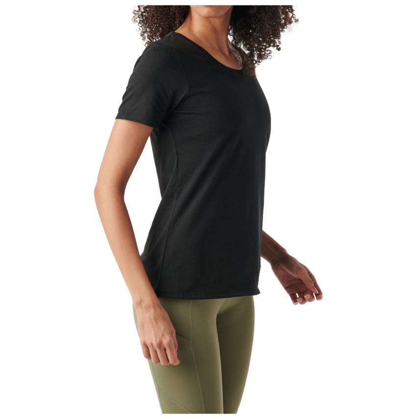 The Women's Resistance Top is crafted in a moisture-wicking cotton and polyester jersey knit with a casual scoop neck. The Resistance carries subtle branding and a fabric locker loop at the back neckline.