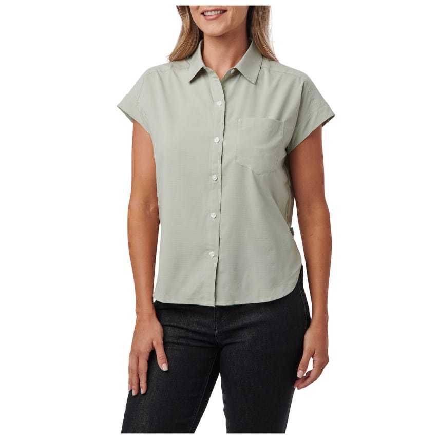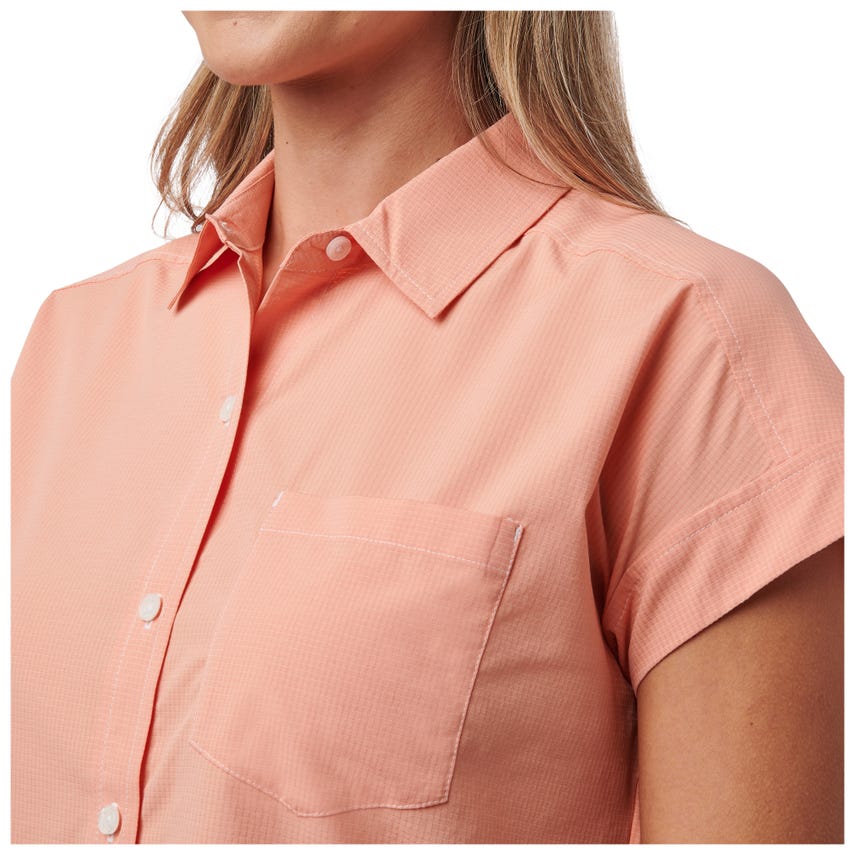 Meet your new favorite short sleeve shirt. The Skye Short Sleeve Shirt combines stylish looks with functional performance. A 65-percent, 35-percent nylon dissolving yarn with Vent-Tac™ properties ensures plenty of circulation for those hot-weather outings, while the wicking finish keeps moisture away. The two-piece collar backed with a collar stand holds its shape after repeated wash and wear. A center front-button placket and left chest pocket hold your accessories, while the Dolman sleeves and folded sleeve hems never go out of style. The Skye Short Sleeve Shirt quickly becomes a secret weapon when the mercury soars.