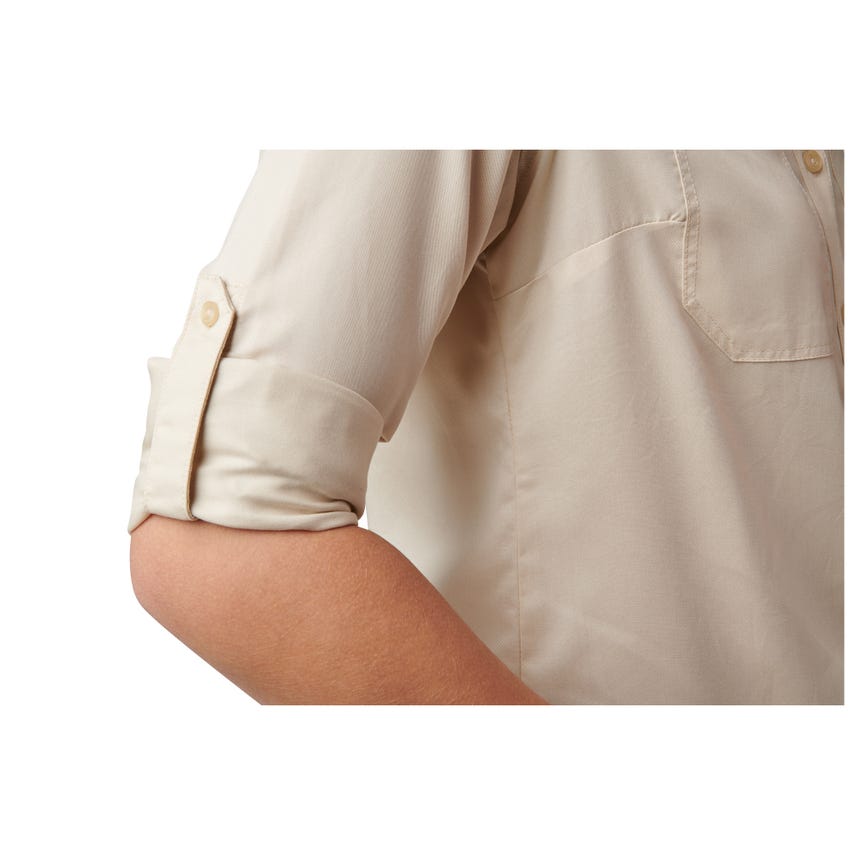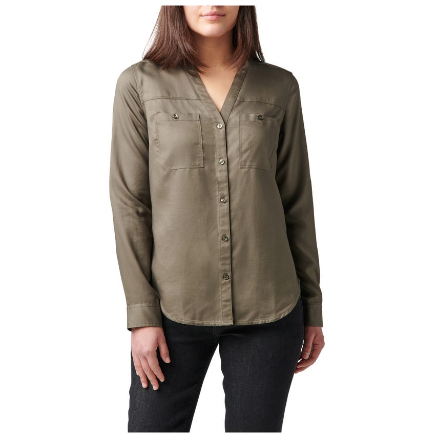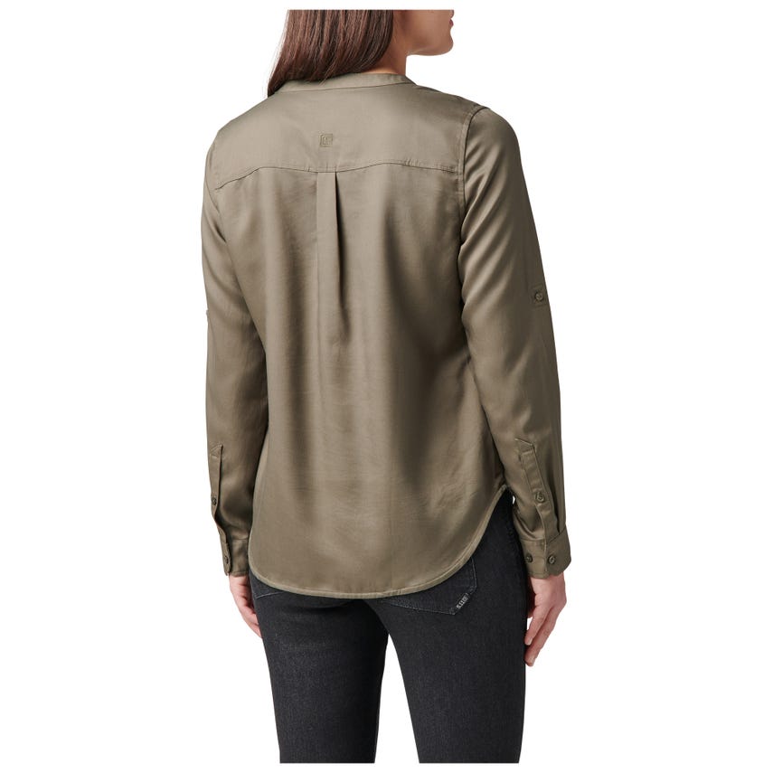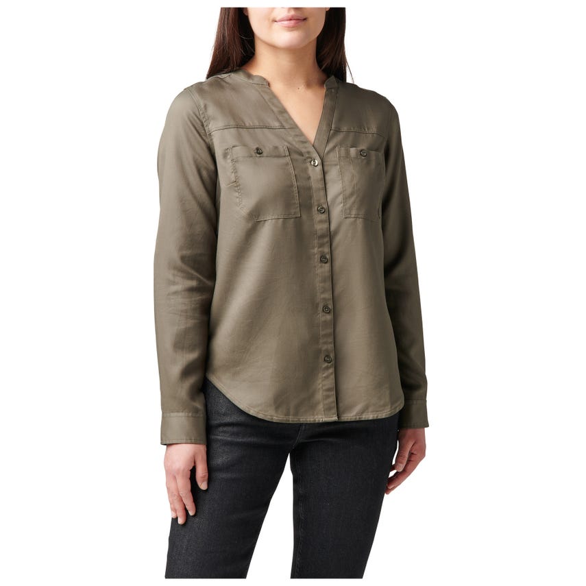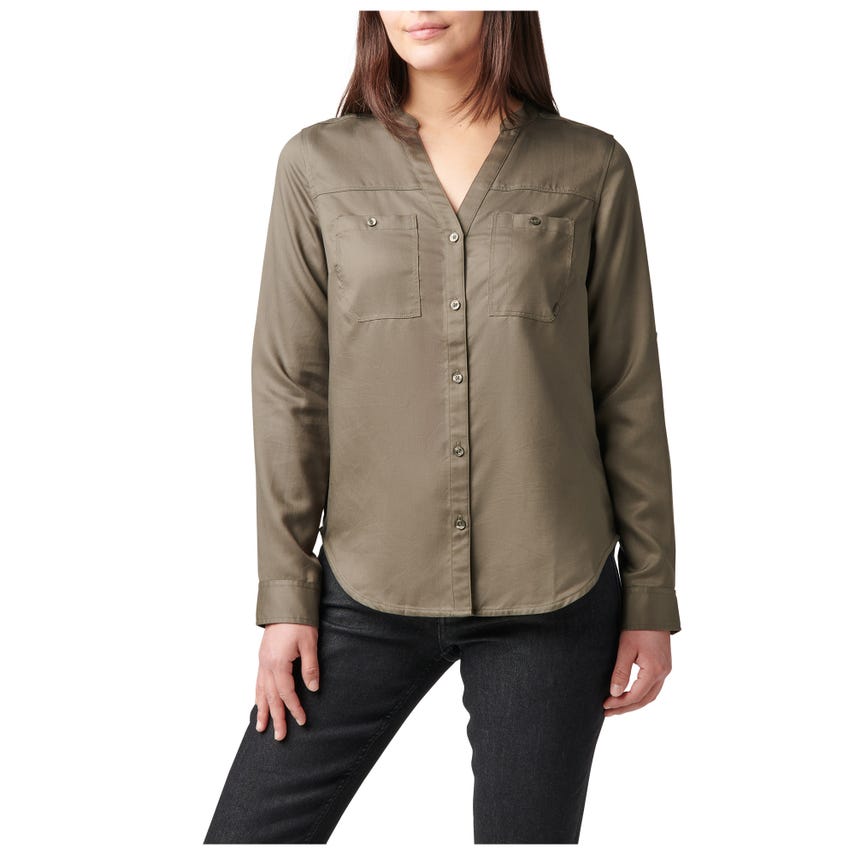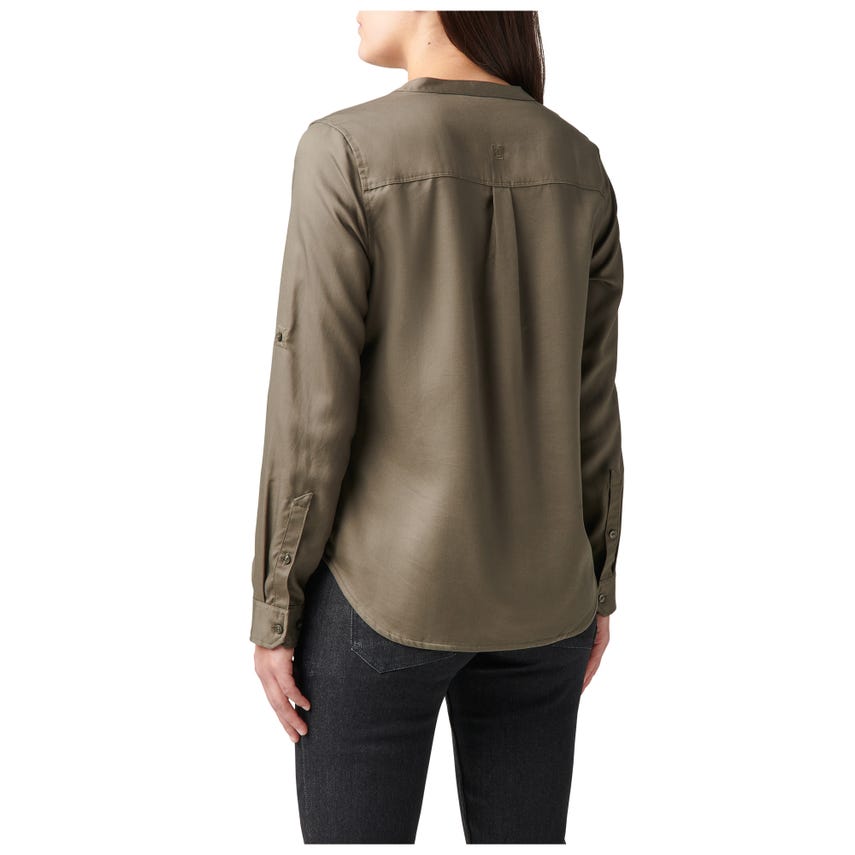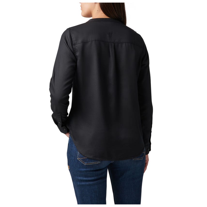 Tactical tailoring for the stylish woman. The Leslie Top features mandarin style collar, shirt tail hem, and adjustable sleeve button cuffs. The lightweight material is strong yet breathable and looks great for a day at the range or a night out on the town. Imported.