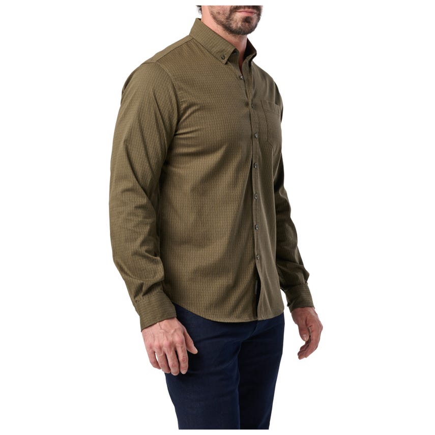 Since when is a button-down so flexible and tough? Since now. The Alpha Flex Long Sleeve Shirt would look great in a boardroom, but that would be a waste of advanced garment technology. From the stretch collar to the poly/cotton dobby stretch fabric, this shirt bends and flexes right along with you, whether you're tracking a suspect or working a long shift on event security. It's even got impact-resistant buttons if things get a little intense. Add an Alpha Flex or two into your Mission Ready™ covert wardrobe and be dressed for some serious action.