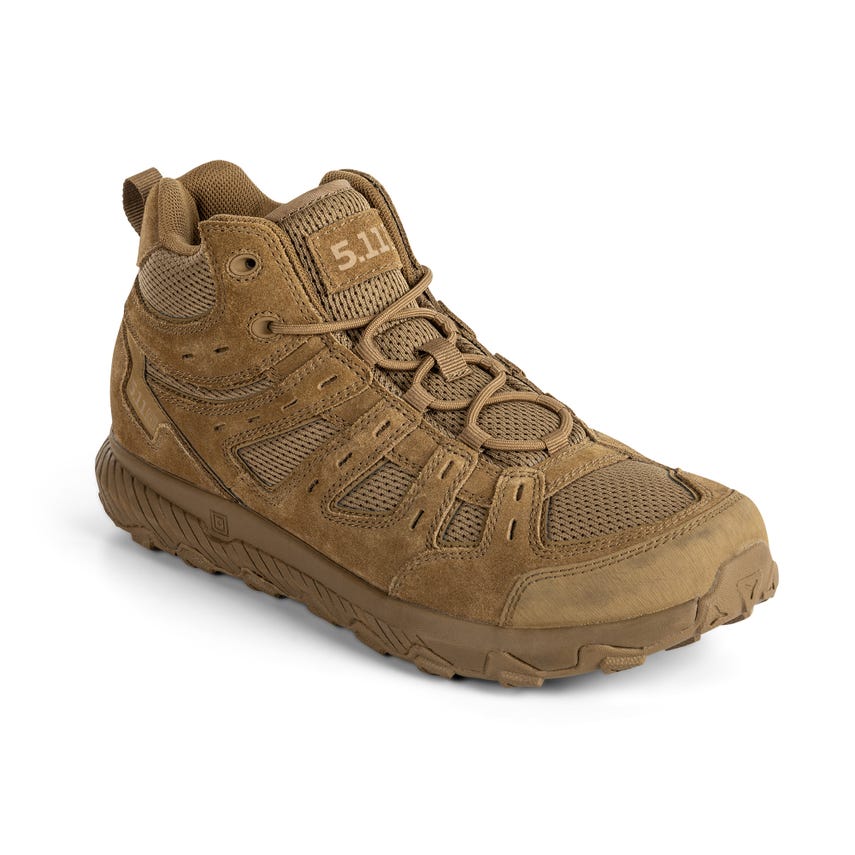 Lace up a pair of 5.11® Ranger 2.0 Mid shoes and your feet will stop complaining, even after your favorite outdoor pursuit or marathon family outing. Those little piggies will be tickled pink to learn this mid-top shoe features an Ortholite™ insole combined with the 5.11® Echo Lite high-rebound EVA midsole to ensure comfort. Built-in All Terrain Load Assistance System (A.T.L.A.S.) technology delivers unparalleled support wherever you roam. A removable support plate increases the support when you’re carrying a heavy load. The suede upper and breathable mesh construction keeps your feet cool while the rubber toe cap adds durability and protection. Sure-grip soles maximize your ability to stay vertical on just about any surface.