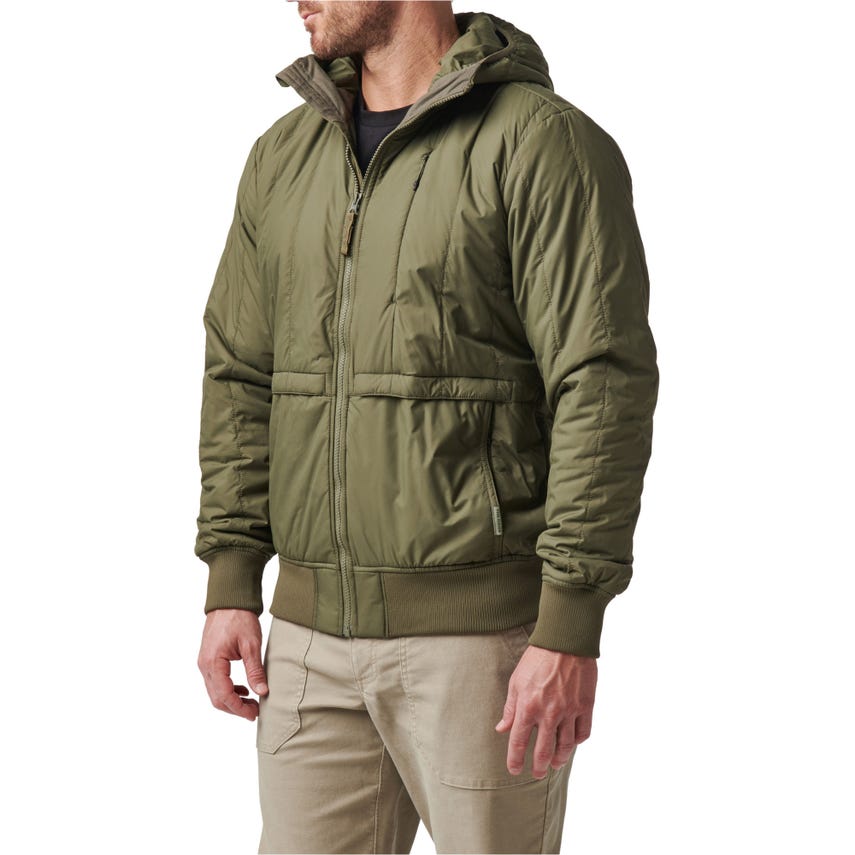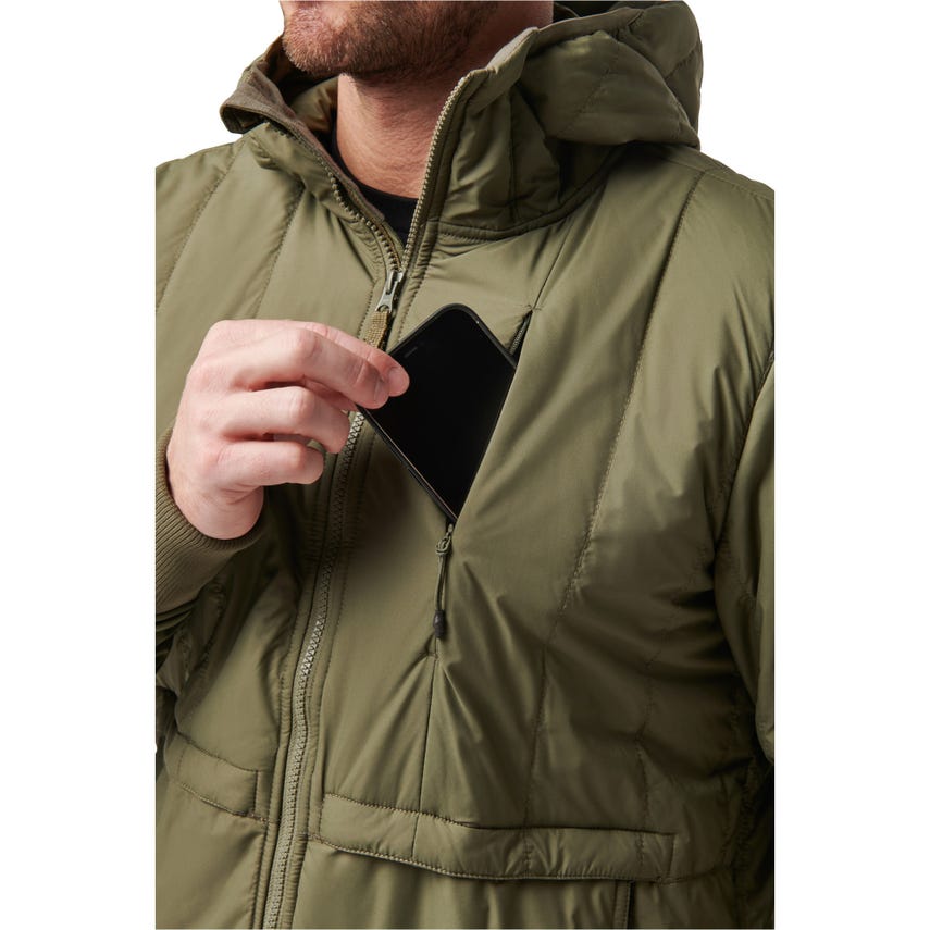 - 5.11[+] TPU label at wearer's left pocket & [+] TPU label at center front hood
