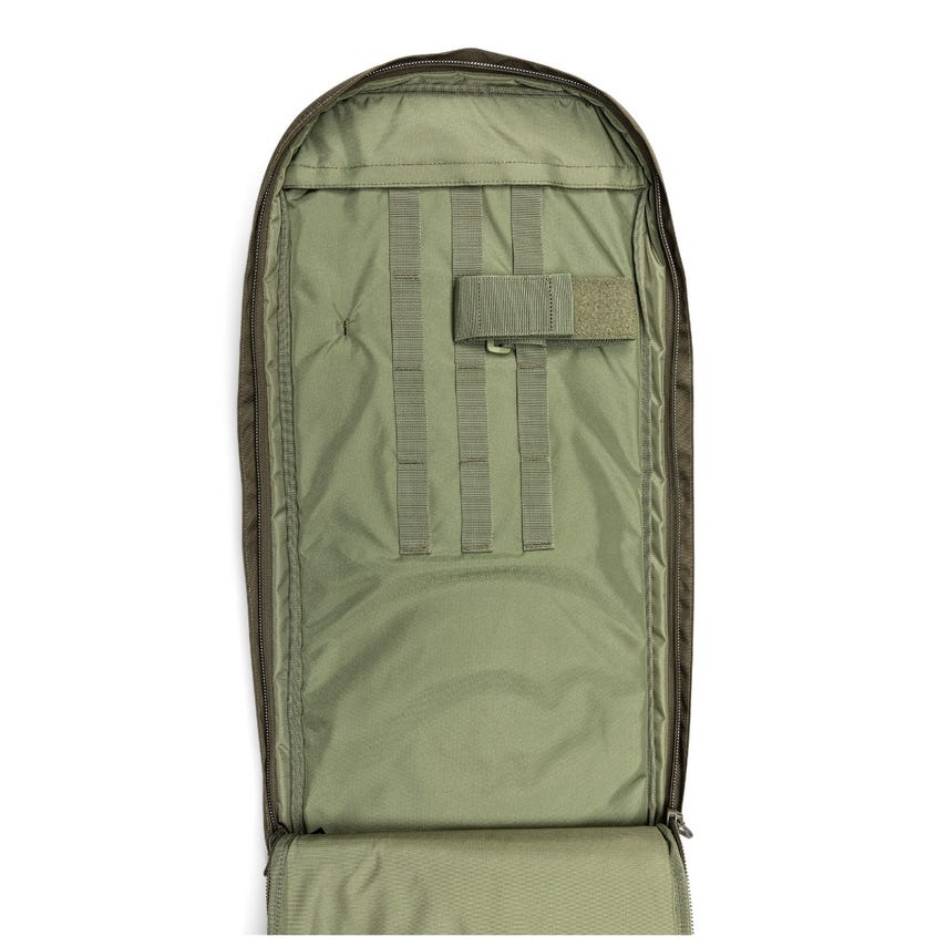 - Internal web MOLLE platform with removable rifle retention strap