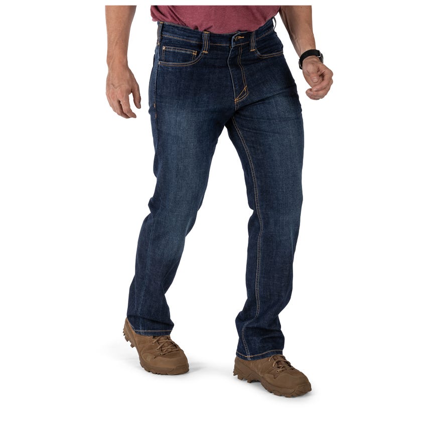 Whether it's a weekend in the backcountry or a night out on the town, the Defender-Flex Jean rolls with you. An innovative cotton/polyester (Lycra® T400 Tough Max) mechanical stretch denim means better stretch and recovery. Five pocket styling plus two mag pockets up your tactical game. Imported. Also available in Slim Fit and Straight Fit. More styles available: shop the Defender-Flex Collection.