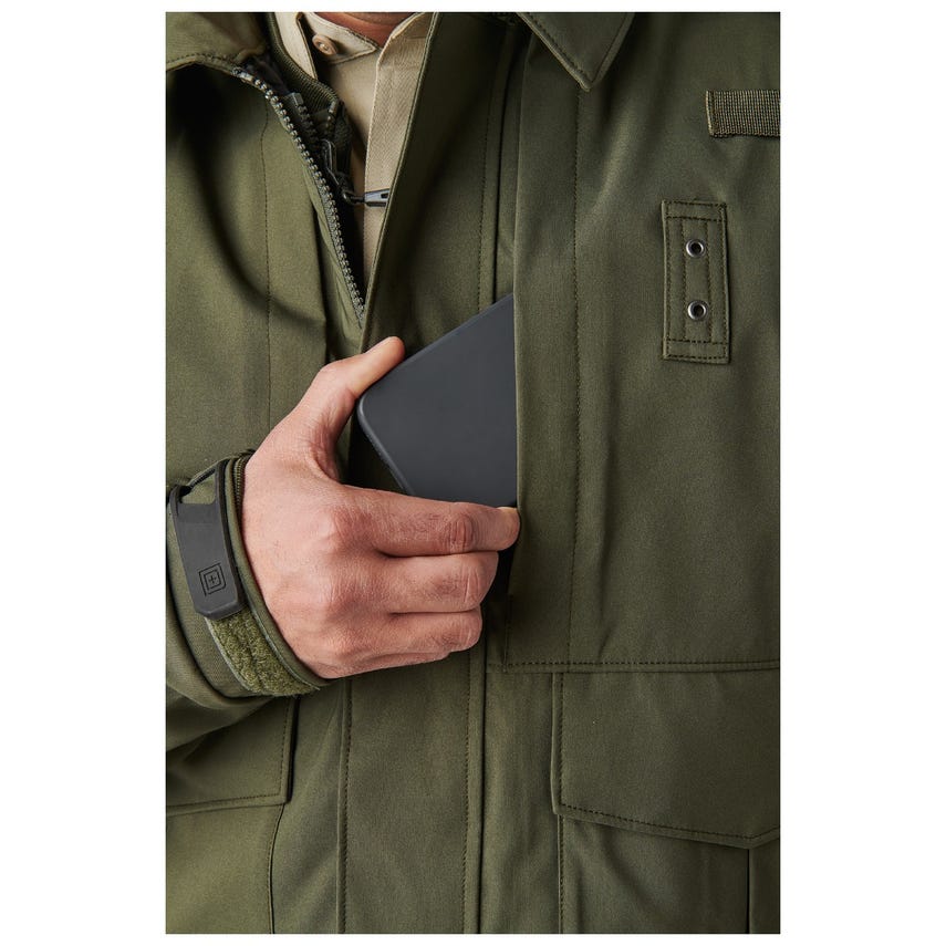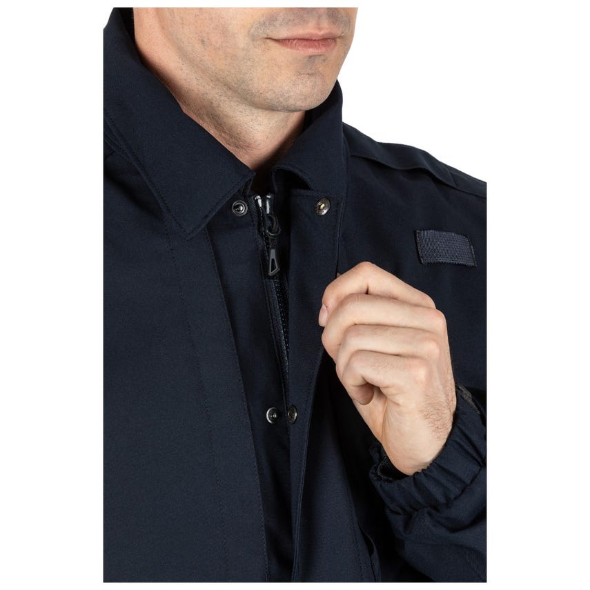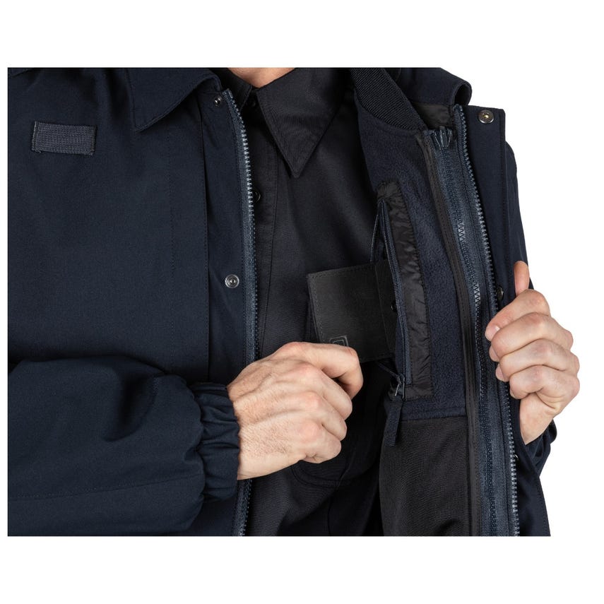 How do we serve law enforcement professionals better? We took our original 4-in-1 Patrol Jacket™ and re-engineered it to perform at an even higher level. The 4-in-1 Patrol Jacket 2.0 is now 27% lighter and offers mechanical stretch for improved flexibility in the field. Constructed with an improved 10K waterproof and 10K breathable fabric with DWR, the 4-in-1 Patrol Jacket 2.0 provides life-saving Blood Borne Pathogen resistance. The eight-pocket outer shell features badge tab, radio loops, camera loop kit, with a removable hood. A 5.11® ReadyPocket™ on both the left and right chest stores your phone, sunglasses or extra magazines. A new Quixip® system on the sides offers rapid firearm access and enhanced ventilation. The warm and breathable fleece liner, with improved lining, ribbed cuffs and collar, adjustable hem with shock cord and added document pockets, serves as a standalone three-pocket jacket when removed. You'll be ready to serve in the coldest weather.