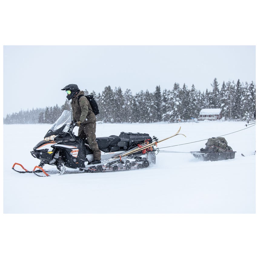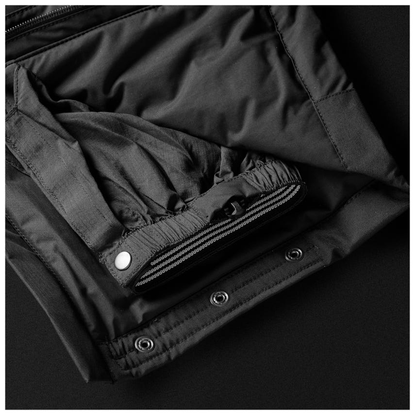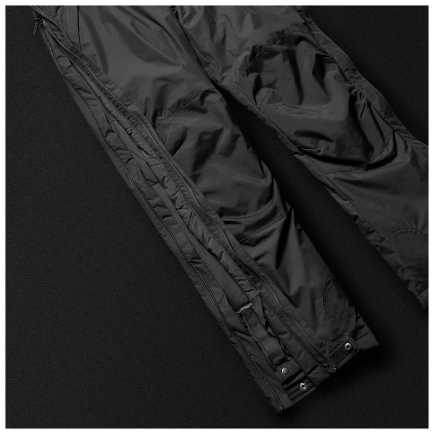 The pant has adjustable hems with hook and loop closures, a snow gaiter with gripper elastic and a shoelace loop to keep the elements out. The pants are packable and come with a compression sock for storage that has a printed ID on the outside.