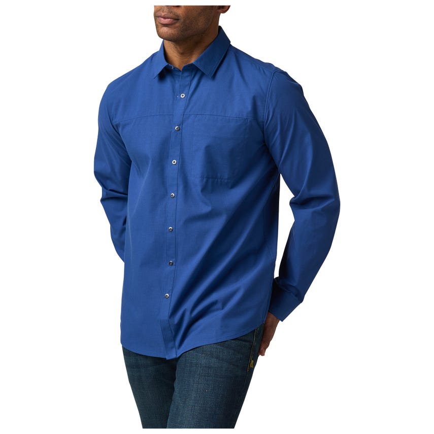 The Igor Solid Long Sleeve Shirt sports a contemporary look that works just as hard after hours as it does on the job. Constructed from 60% cotton and 40% polyester poplin, the Igor provides long-lasting comfort and wear. Beneath that exterior beats the 5.11 functionality you’ve come to expect. Our center-front RAPIDraw™ snap placket enables fast access to EDC gear, phone, wallet or passport. A fold-down collar, shirt-tail hem and button-adjustable cuffs keep everything on point. The on-seam pocket on the left chest provides traditional storage for items that don’t require added security.