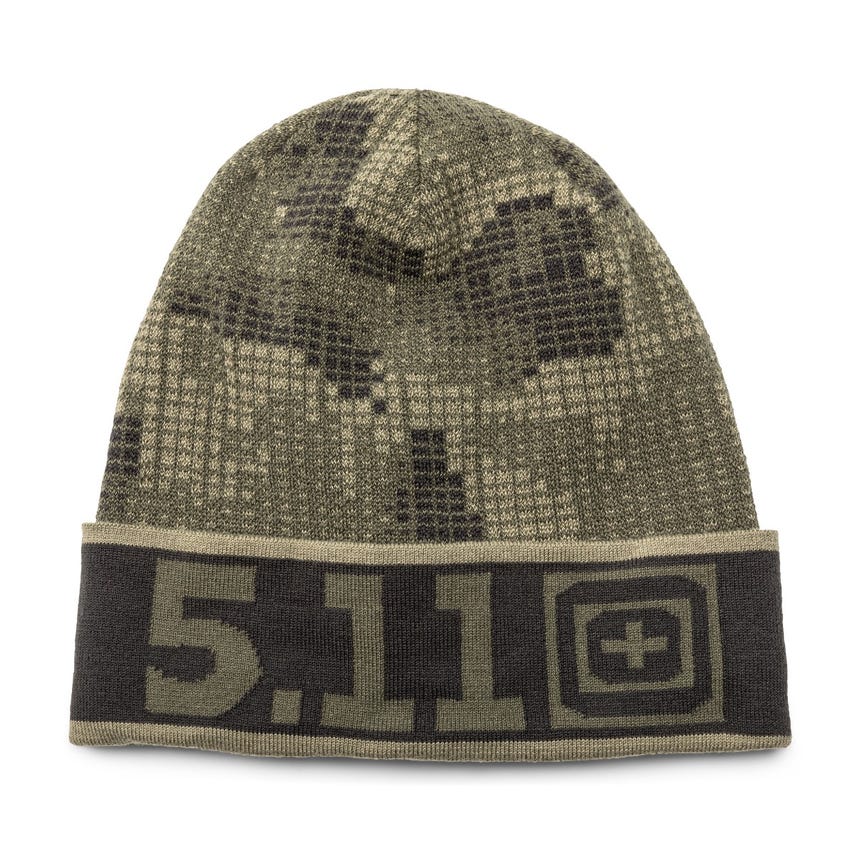 The Vector Camo Beanie sports a digi-camo inspired outer knit shell of polyester with a touch of elastane for stretch plus a cotton and elastane inner liner for added coverage and comfort. A large 5.11 logo is woven into the jacquard knit cuff and a 6-dart closure puts a neat finish on it.