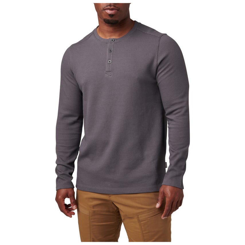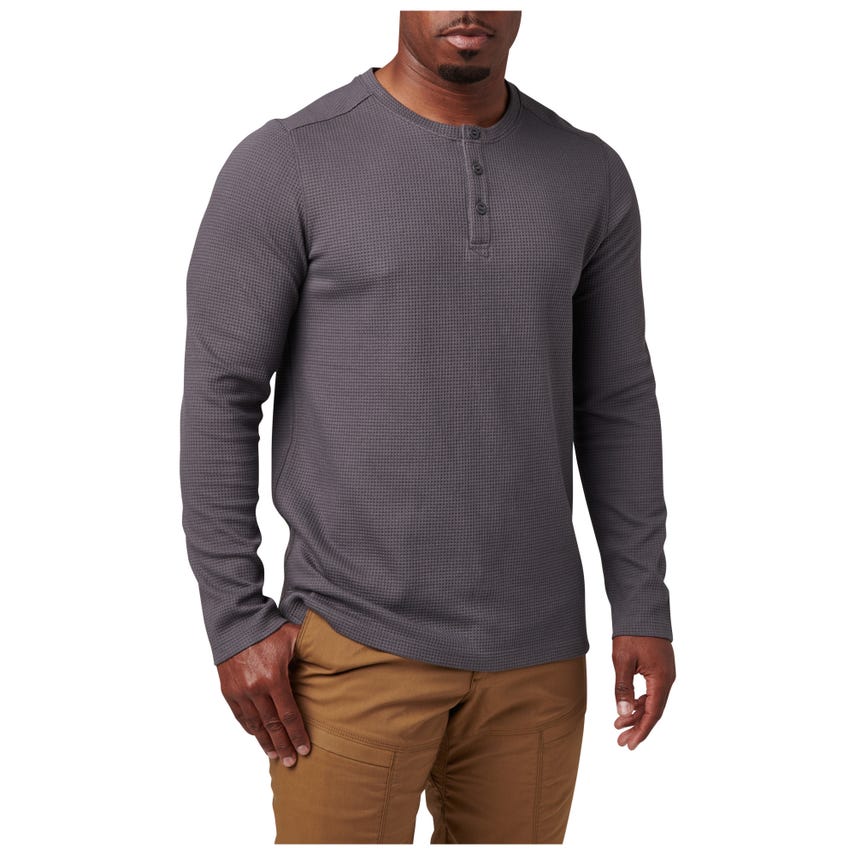 Keep the chill at bay with our rugged Jasper Thermal Long Sleeve Shirt. We combined classic henley styling with 5.11 durability, making the Jasper a solid option for travel, training, and the day-to-day. The warm thermal knit is crafted from a soft cotton and polyester blend for lasting comfort. A three-button placket and side seam vents help you manage the temperature. The Jasper Thermal makes a highly functional addition to your bug-out bag, so you’ll want to order one for daily wear and an extra one—for just in case.
