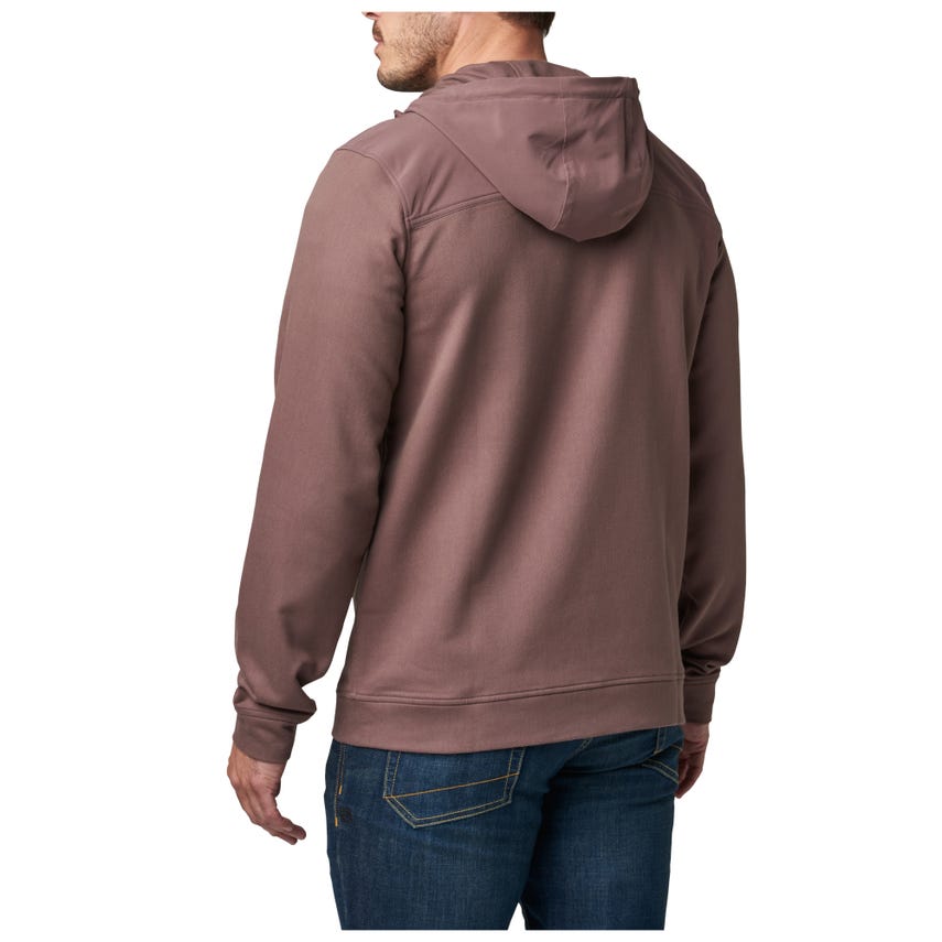 It’s time to upgrade your hoodie. Tougher than a typical hooded sweatshirt, our lo-vis Plummet Jacket is constructed from a rugged cotton-polyester blend, infused with elastane for freedom of movement. To protect against the elements and guard against chafing under a heavy load, we fortified the shoulders, upper back, chest and hood with DWR-coated overlays. A one-way zipper on the front ensures quick on and off, while the internal chin guard prevents those annoying zipper bites. Secure your keys, phone and other essentials inside the two zippered pockets on the front. Cinch down the hood and hit the trail or the street.