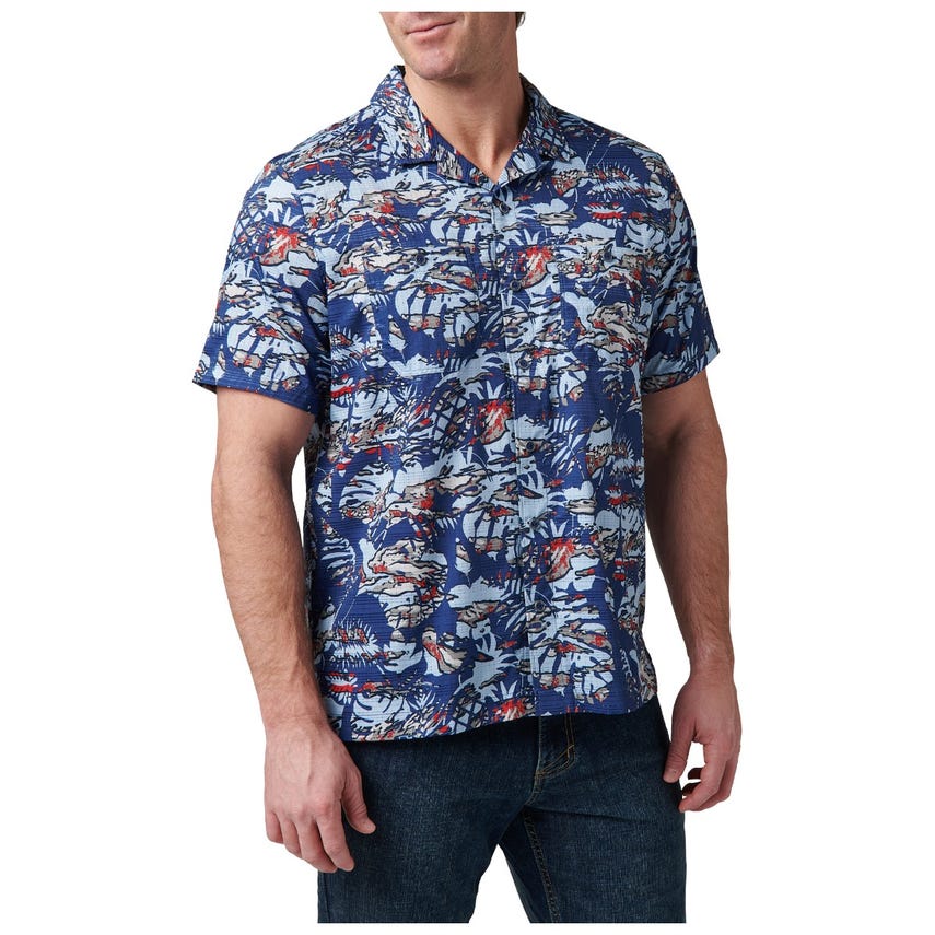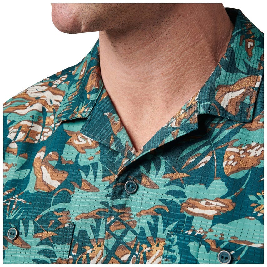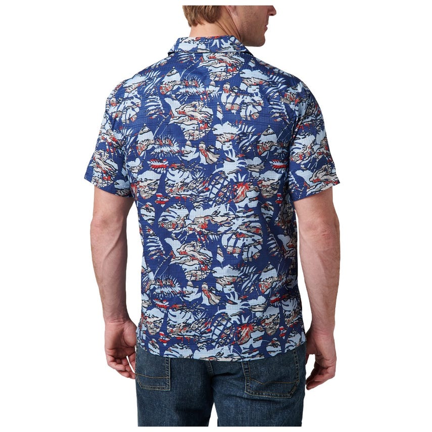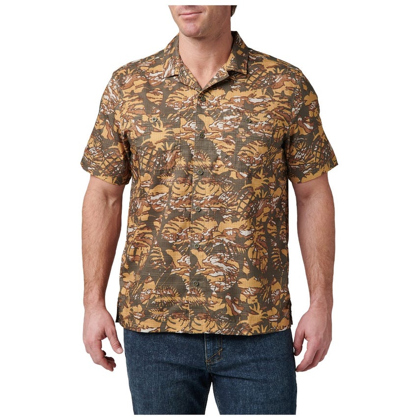 Remain chill but ready in our lightweight Adventure Print Short Sleeve Shirt. Designed for EDC carry, this laidback shirt wears Neu-Vay Camo patterns that blend in by subtly standing out. The center front RAPIDraw™ snap placket provides fast, reliable access to your CCW. A pair of patch pockets and a pen pocket on the chest keep critical items at hand. The 100% polyester construction, with Vent-Tac™ properties and wicking finish, keeps you cool undercover or off duty. This button-down style is finished with a fold-down camp collar and a double-layer back yoke. The straight hem rides at the ideal length for IWB concealment, making the Adventure Print Short Sleeve Shirt the perfect partner for warm-weather carry.