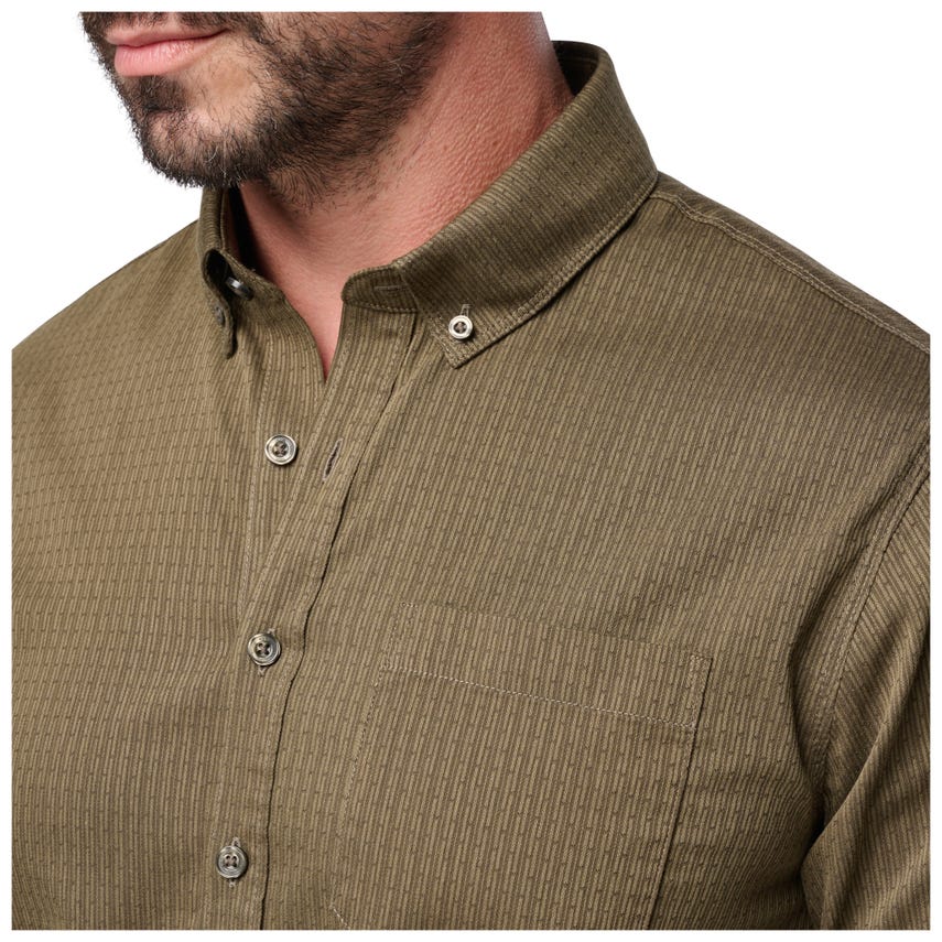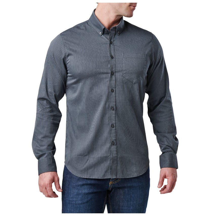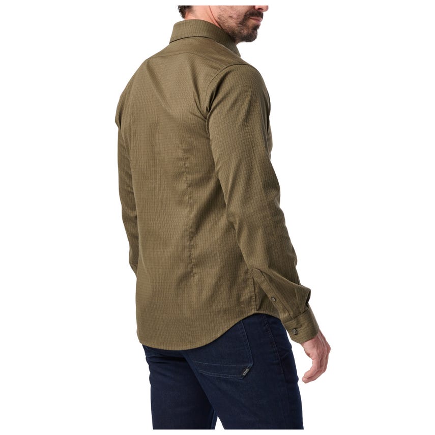 Since when is a button-down so flexible and tough? Since now. The Alpha Flex Long Sleeve Shirt would look great in a boardroom, but that would be a waste of advanced garment technology. From the stretch collar to the poly/cotton dobby stretch fabric, this shirt bends and flexes right along with you, whether you're tracking a suspect or working a long shift on event security. It's even got impact-resistant buttons if things get a little intense. Add an Alpha Flex or two into your Mission Ready™ covert wardrobe and be dressed for some serious action.