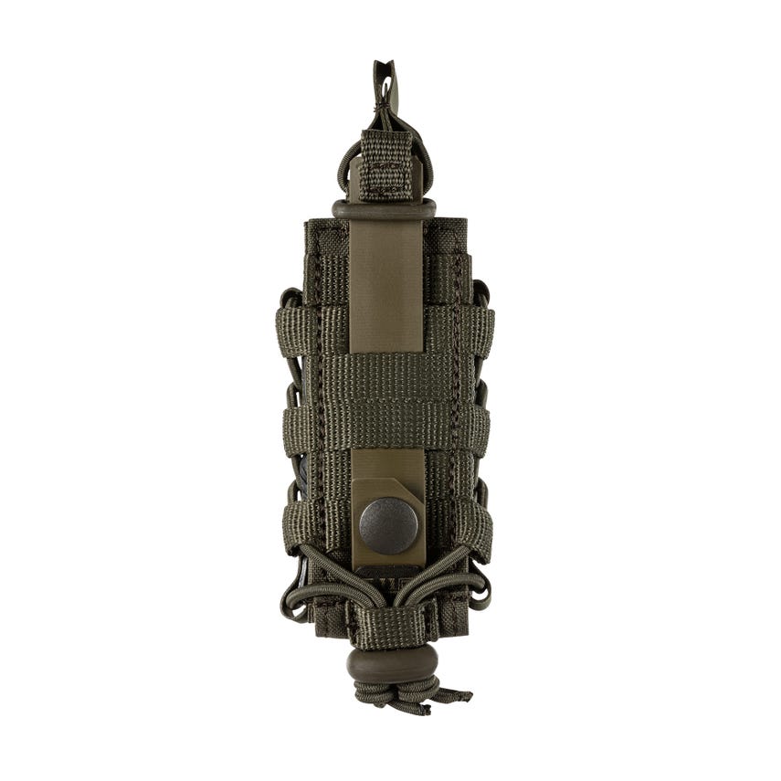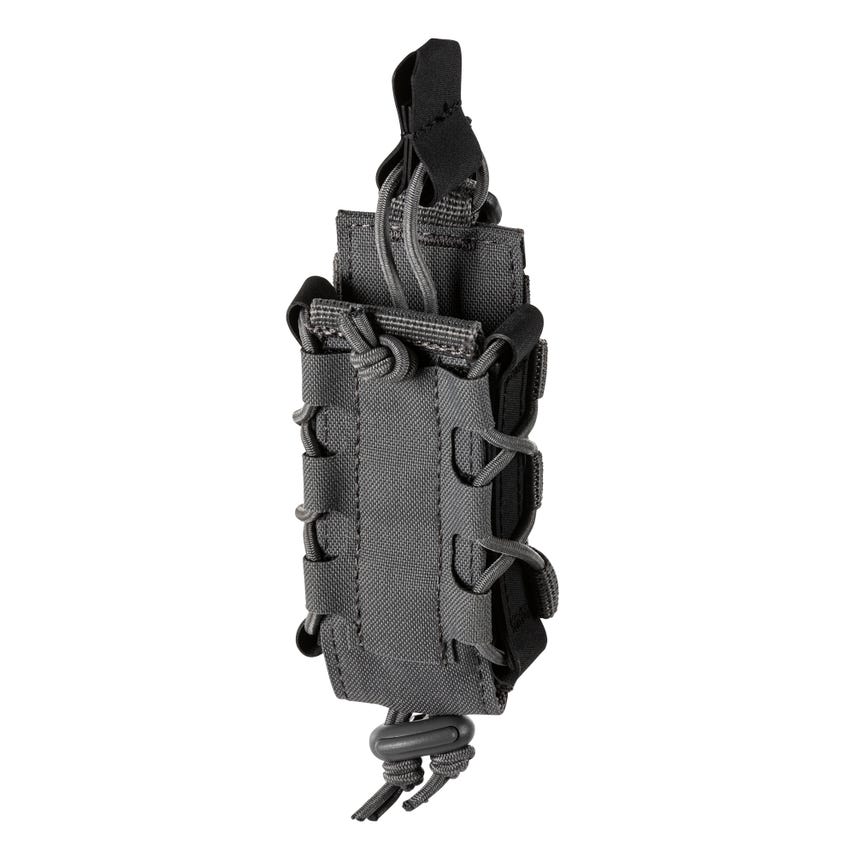 The Flex Single Pistol Multi Pouch has our patent pending adjustable side panel bungee cord lock system for various pistol mags or other EDC tools. Flex-HT™ technology provides mounting versatility and easy weaving to all platforms with waterproof TPU coated straps. The front and bottom panels are double layered with 500D for extra durability. An alternate top bungee retention system is included.