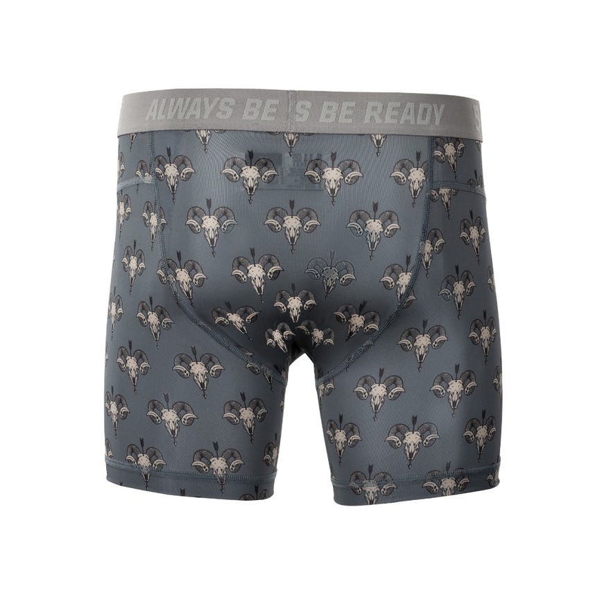 Channel your inner hunter-gatherer with the Mission Ops Briefs, featuring a bold ram skull motif. These briefs are crafted for the modern-day warrior, combining lightweight polyester and elastane for maximum comfort. With flatlock seams and a tagless label, they ensure an itch-free experience. Ready for any adventure, these briefs remind you to "Always Be Ready" emblazoned on the waistband.