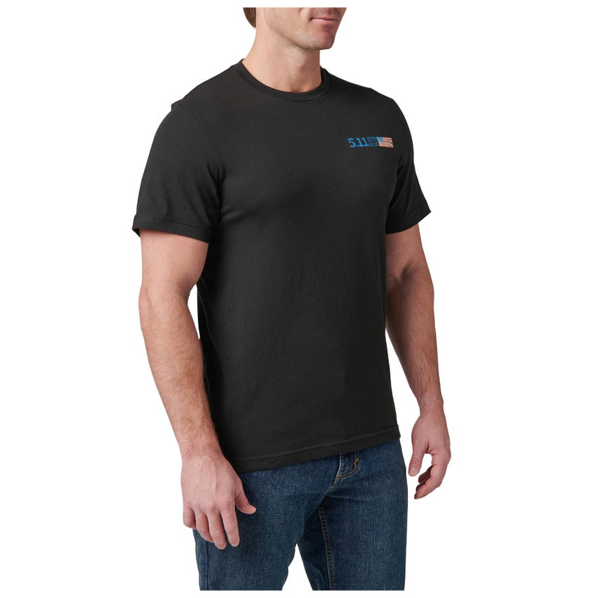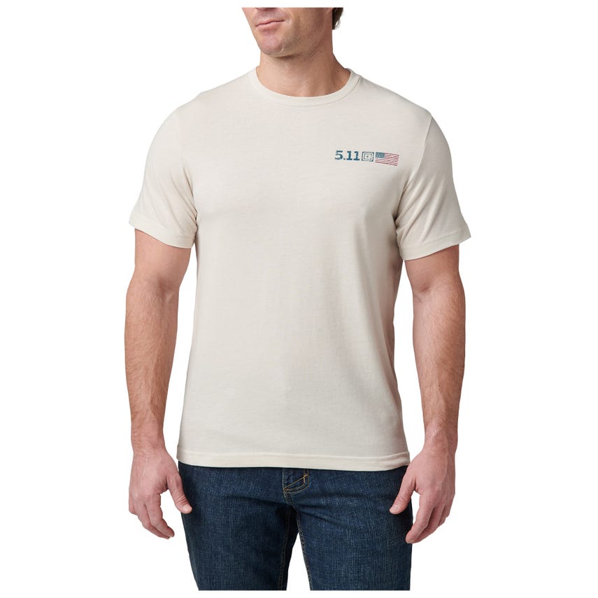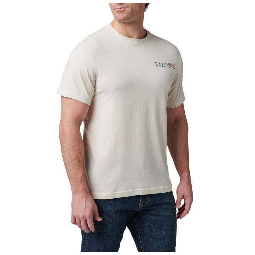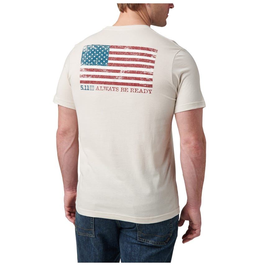 Feeling nostalgic for some stars and stripes? The American Flag Tee by 5.11 Tactical lets you wear your patriotism comfortably. This tee features the iconic flag with a vintage touch, complete with the bold "Always Be Ready" motto. Crafted from a durable cotton/poly blend, it's designed to withstand fading, ensuring you stand ready for anything, year after year.