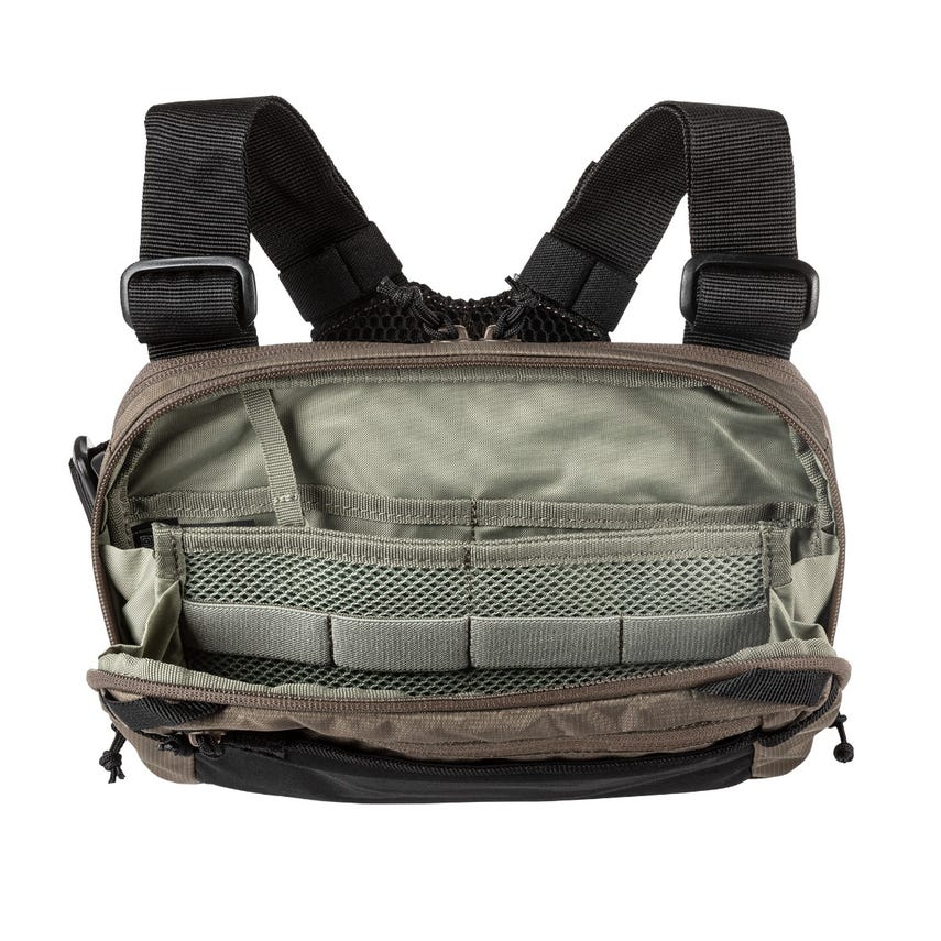 Be ready for anything and everything with the Skyweight Utility Chest Pack. Weighing less than a pound, this utility pack's two-liter capacity keeps essential tools close at hand. Loaded with EDC organization, the main compartment is easy to access thanks to a gusseted opening. A zippered pocket and stretch woven pockets on the front hold high-priority items. The quick-release harness system is adjustable and versatile. When removed, the pack can be used as a standalone or as a waist pack. Hot pulls make access to the ambidextrous CCW compartment - sized for compact pistols - FAST. An internal loop panel provides a mounting platform while elastic bands are available to secure items. The breathable back panel keeps you comfortable and the padded pass-through is compatible with standard belts, hip belt from RUSH® 100 backpacks or the Skyweight Hip Belt (sold separately). Gear loops, 1x1 side loops and bottom webbing loops maximize carry options. Whatever you’re facing, you can depend on the Skyweight Utility Chest Pack.