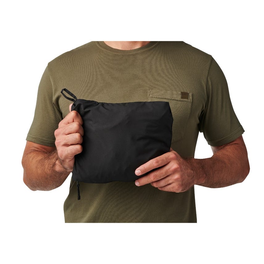 - Jacket packs into left hand pocket