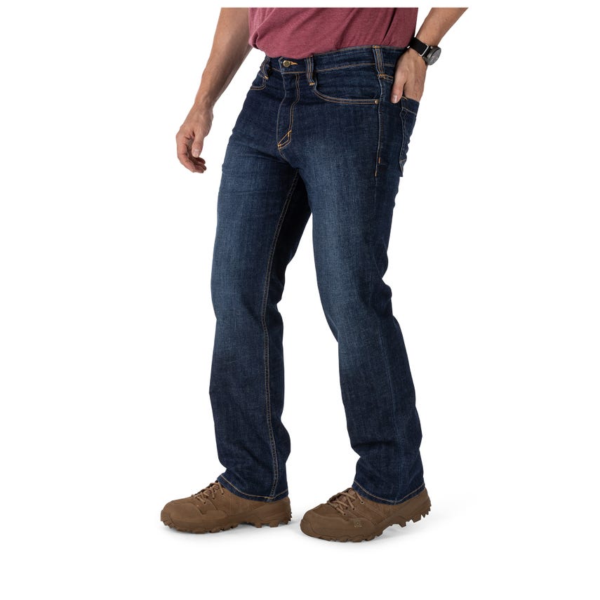 Whether it’s a weekend in the backcountry or a night out on the town, the Defender-Flex Jean rolls with you. An innovative cotton/polyester (Lycra® T400 Tough Max) mechanical stretch denim means better stretch and recovery. Five pocket styling plus two mag pockets up your tactical game. Imported. Also available in Slim Fit and Straight Fit. More styles available: shop the Defender-Flex Collection.
