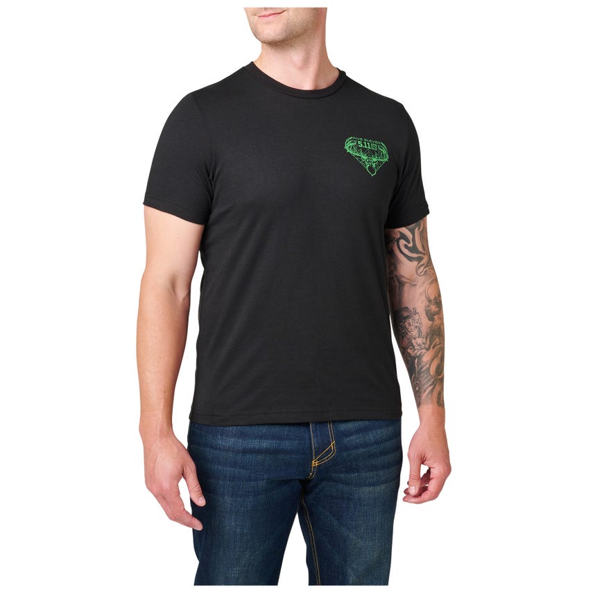 Embrace your inner woodsman with the Big Buck Tee. This shirt features a striking stag graphic, giving a nod to nature's majestic ruler. Made from a comfortable ringspun cotton/poly blend, it promises durability with fade-resistant inks. Whether tracking through trails or relaxing at home, this tee combines rugged style with lasting comfort. Wear it and let your wild side out.