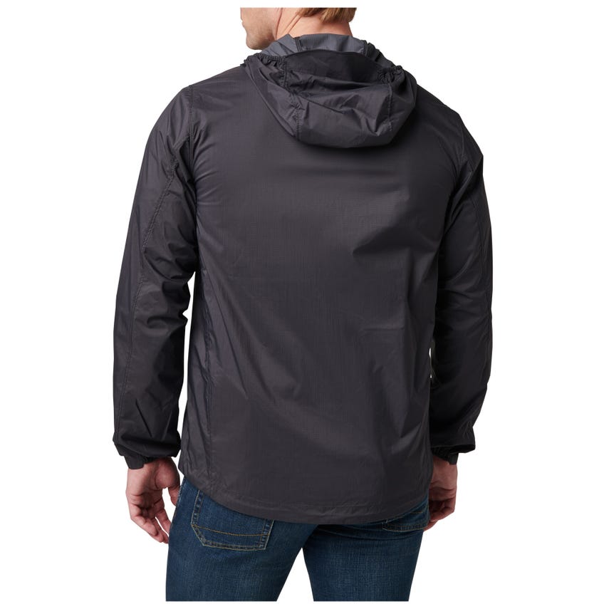 Breeze through the day with our Packable Windbreaker. This grab n' go shell is constructed from tough DWR-coated ripstop fabric with Vent-Tac™ properties for ventilation. A one-way front zipper ensures quick on and off. The brimmed hood cinches down for a snug fit, while partially elasticized cuffs keep your sleeves in place when you're on the move. Stuff this self-packable windbreaker into its own zip pouch pocket with two-inch carry loop. Built for the daily grind, the 5.11® Packable Windbreaker is also perfect for go-bags, vehicle emergency kits and travel.