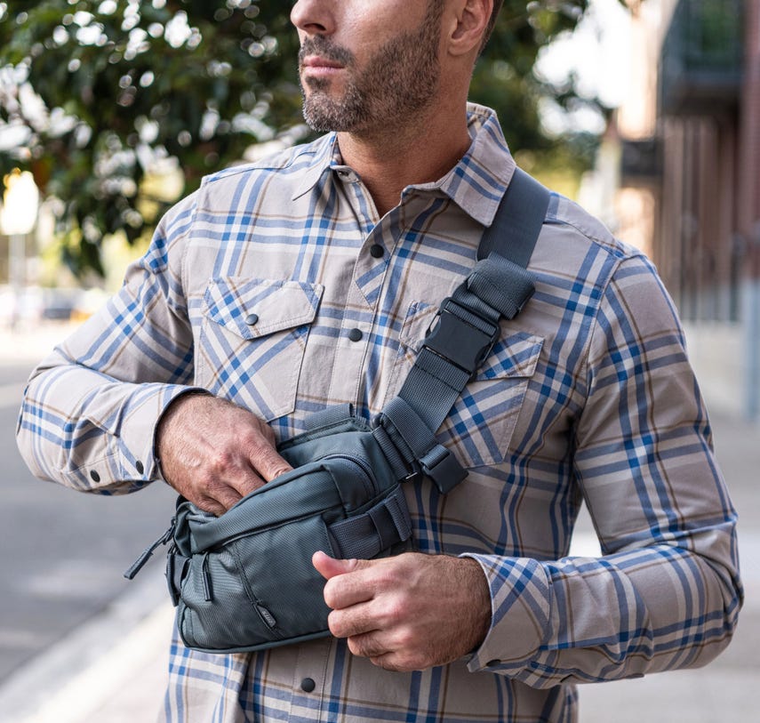 With an updated quick-release S/R buckle waist strap and easier to operate Duraflex® buckles, the LVC6 2.0 Waist Pack is the perfect “grab n' go” bag. Webbing on the top and bottom gives you the ability to attach to the 5.11 LVC18 backpack or LVC Covert Carry Pack for longer operations. On its own, it can be adjusted to fit around the waist or across the body and has a quick release for fast access to your gear. Additionally, a webbing strap has been included for stabilization around the waist or across the body so you can customize it to your mission. Inside the front zipper pocket, there is a loop back panel and mesh pockets to organize your gear. A hidden slip compartment between the main compartment and back wall, side compression straps, and a rear mesh pocket make this versatile pack a good fit for any operation.