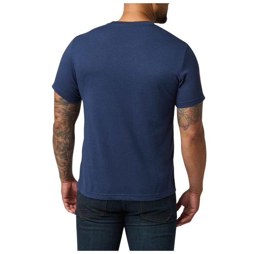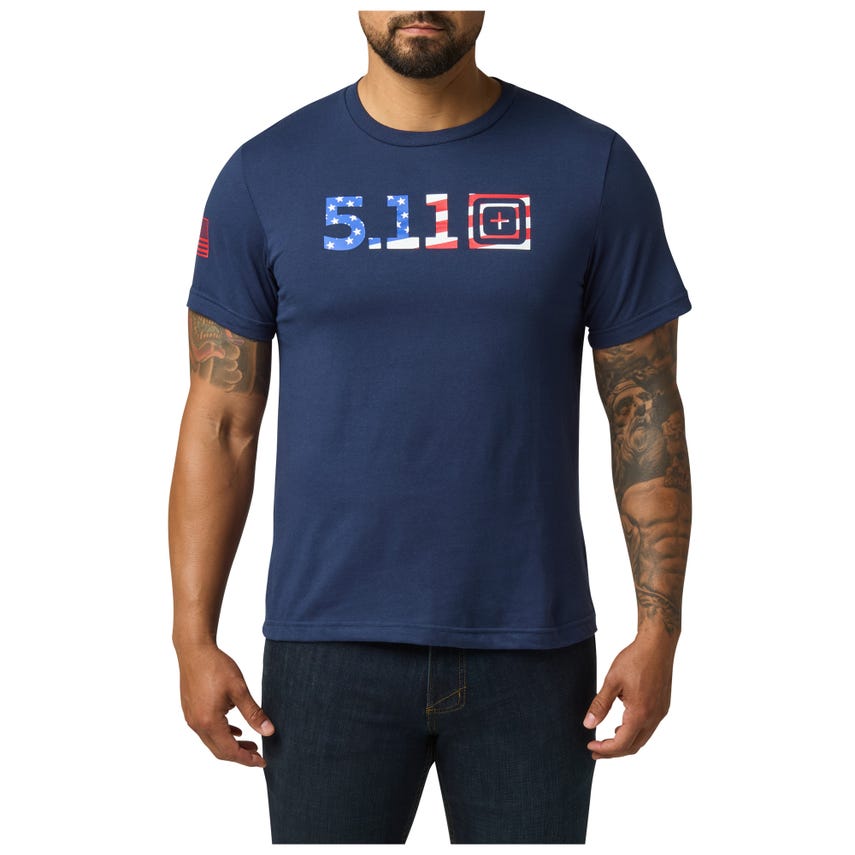 Make a statement as bold as the stars and stripes. This USA Flag Fill Tee from 5.11 Tactical takes inspiration from Old Glory, offering a nod to timeless American pride. Designed for comfort, the ringspun cotton/poly blend ensures a fit that's always up to par?on duty or off. Flaunt the 5.11 logo with fade-resistant inks that promise longevity in style and spirit.