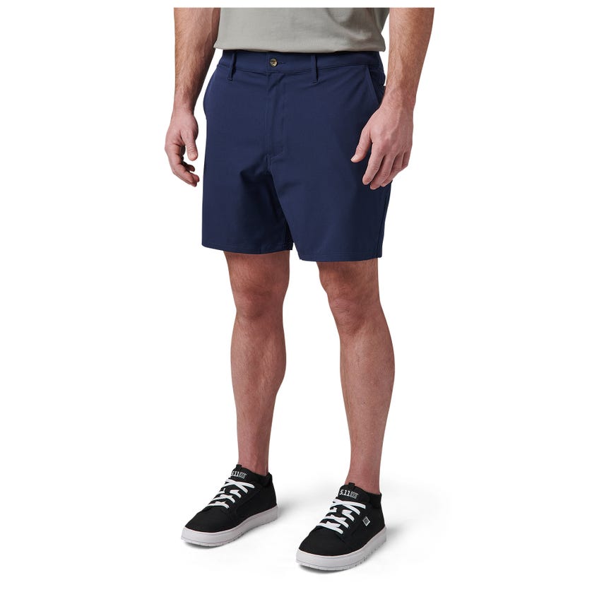 Get ready for the weekend with our versatile Dredger 7-inch Hybrid Short. The short's chino/walkshort fit and styling combine the comfort and feel of your favorite boardshorts with tactical features. Whether cruising the streets, surfing, or golfing, these are your go-to tactical-trunks for versatility, durability, and comfort. The Dredger features 88% polyester and 12% elastane with polyester mesh pockets that dry quickly. These shorts sport six pockets, including two extra deep hand pockets, back utility drop pockets, and a phone pocket to carry everything you need to get through the day. A front fly zipper with button closure and back double welt pockets, plus webbing V-shaped center back belt loop, add styling and hidden practical function. The 5.11® Dredger 7in Short will quickly become your go-to choice for warm-weather adventures.