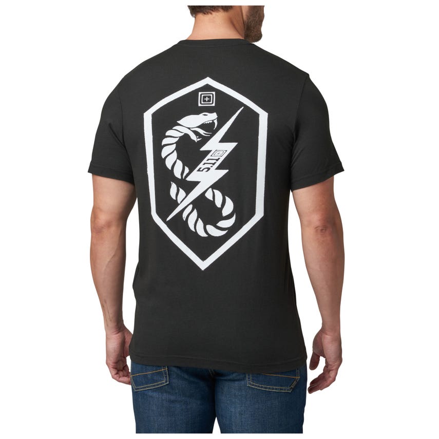 Unleash your inner adventurer with the PT-R Rope Snake Tee, a nod to the legendary symbol of resilience and agility. This tee features an electrifying graphic of a rope-formed snake entwined with a bolt of lightning, capturing the essence of stealth and power. Crafted from a cotton/poly blend with moisture-wicking properties, it ensures lasting comfort and durability, perfect for your next outdoor escapade.