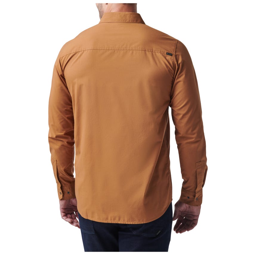 The Igor Solid Long Sleeve Shirt sports a contemporary look that works just as hard after hours as it does on the job. Constructed from 60% cotton and 40% polyester poplin, the Igor provides long-lasting comfort and wear. Beneath that exterior beats the 5.11 functionality you’ve come to expect. Our center-front RAPIDraw™ snap placket enables fast access to EDC gear, phone, wallet or passport. A fold-down collar, shirt-tail hem and button-adjustable cuffs keep everything on point. The on-seam pocket on the left chest provides traditional storage for items that don’t require added security.