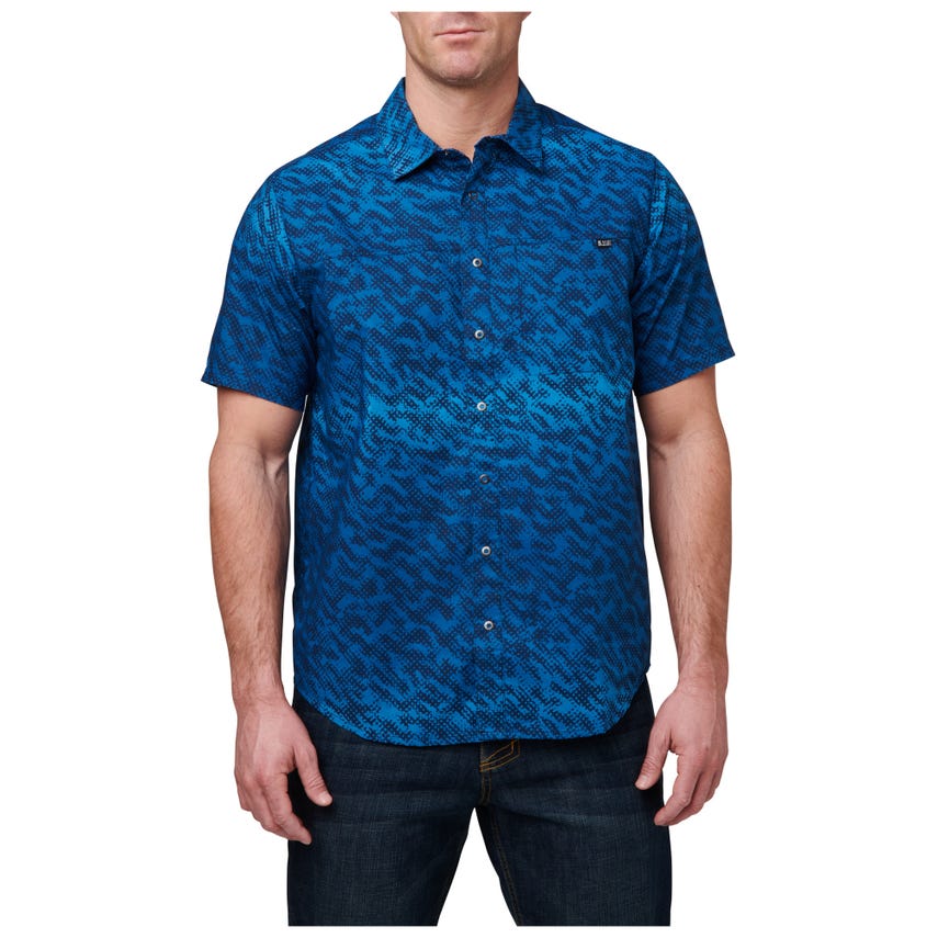 Whether you're wetting a hook or telling fish tales over a cold one, the Wyatt Short Sleeve Print is the perfect shirt. This fishermen's favorite is constructed from a comfortable 60-percent cotton and 40-percent polyester poplin with a rinsed wash in trout camo. The two-piece collar backed with a collar stand holds its shape after repeated wash and wear. A RAPIDraw™ placket with logo metal snaps offers fast access to your EDC gear. This casual shirt features a left chest pocket, shirttail hem and double-layer back yoke. Hit the river or the local watering hole in style with the Wyatt Short Sleeve Print.