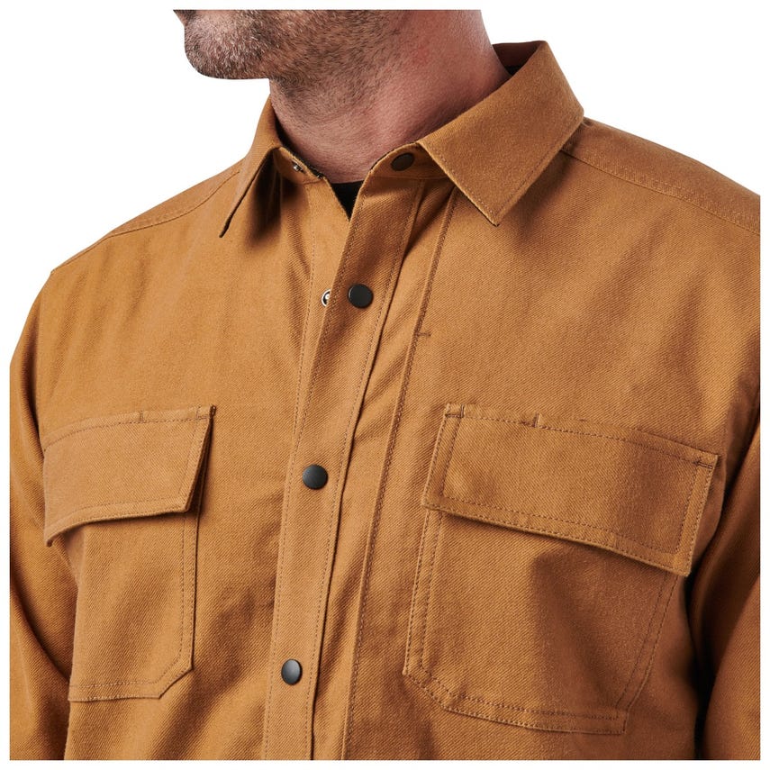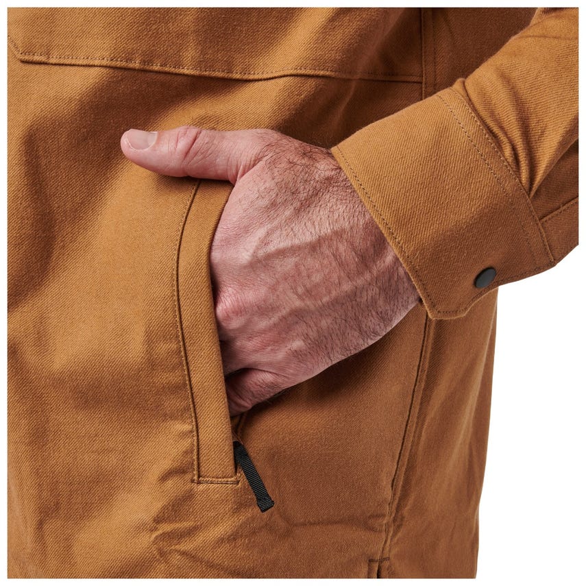 Pulling double duty is the Randolph Shirt Jacket’s specialty. The cotton-elastane twill construction and professional style look sharp in any situation, while remaining truly tactical. Urban-friendly functionality begins with our RAPIDraw™ snap placket that keeps your everyday essentials hidden within reach. Left and right chest pockets with flaps, concealed closures and pen guides provide additional carry options. A pair of hand pockets and sleeve cuffs with adjustable snap closures maintain warmth, while side seam vents ensure all-day comfort. Add internal dump pockets and our Randolph Shirt Jacket provides seven places to store essential EDC, office or vacation items. You’ll be ready for whatever comes your way.