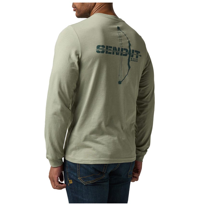 When archery meets apparel, you get the Send It Bow Long Sleeve Tee?a playful nod to ancient skills with modern style. This shirt features a striking bow graphic that says "Send It" in bold, confidence-inspiring letters, perfect for aiming high. Made from a breathable cotton/poly blend, it combines comfort with resilience, ensuring the design stays as sharp as your instincts.