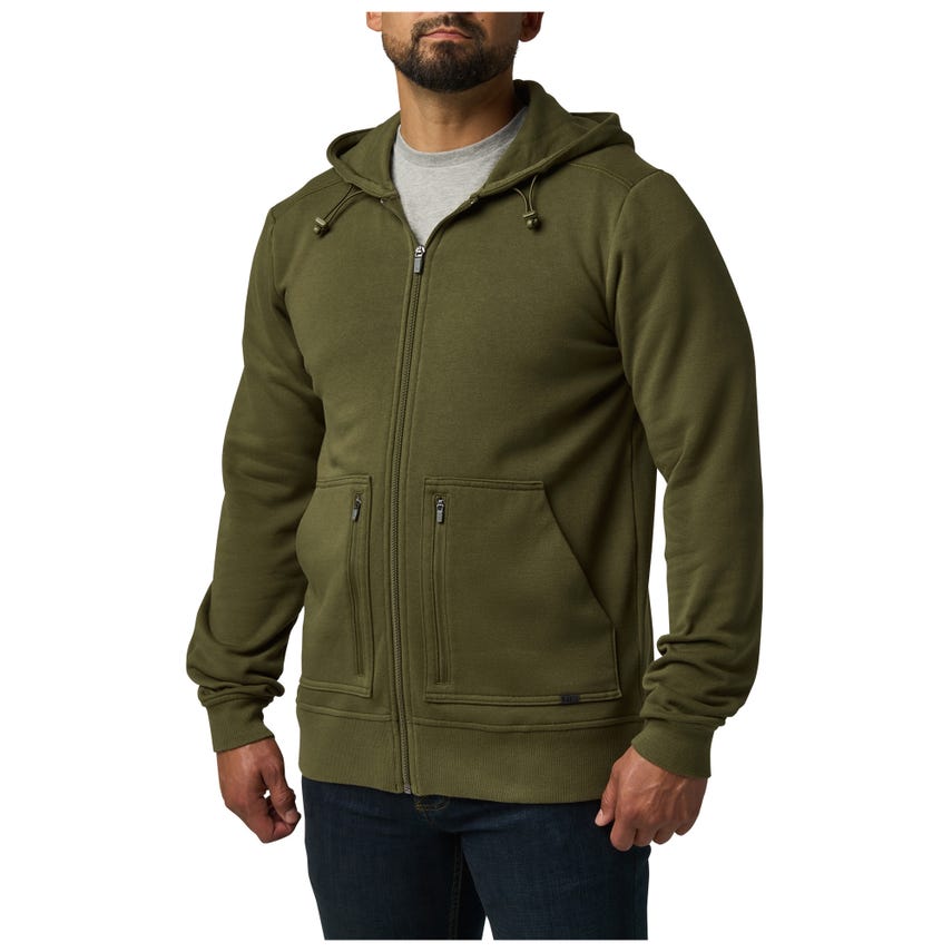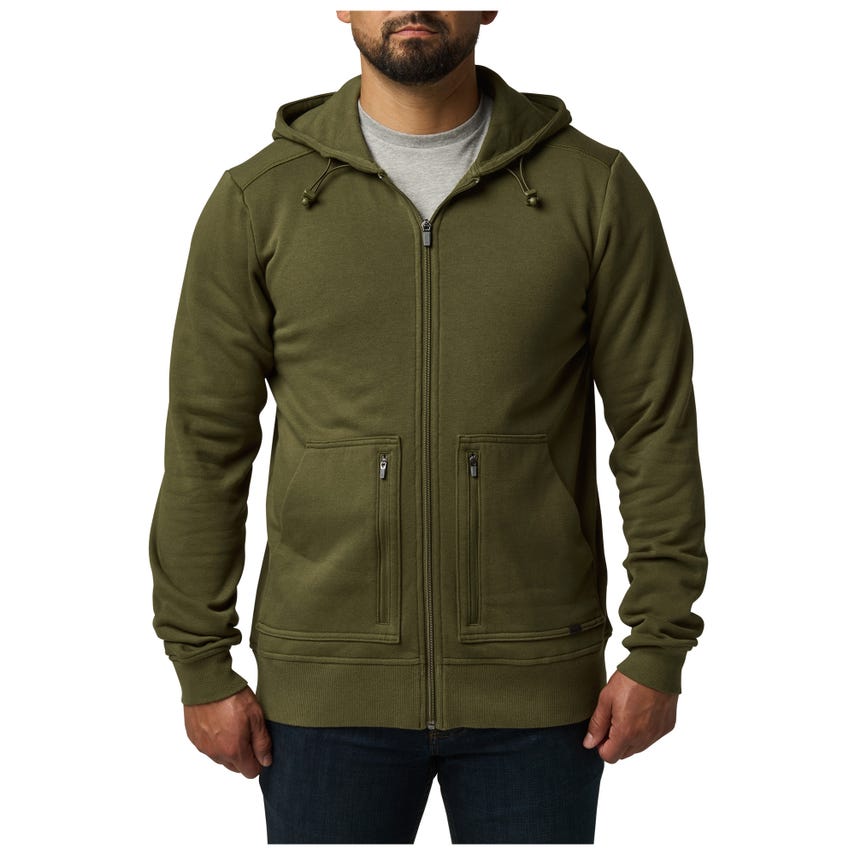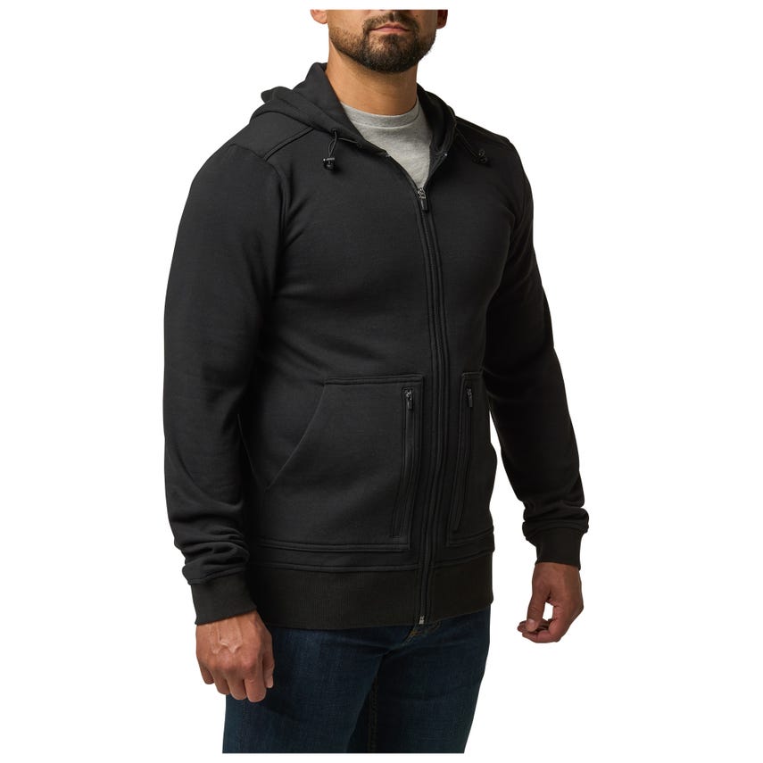 • Double entry kangaroo hand pockets with zip secured outer layer pocket