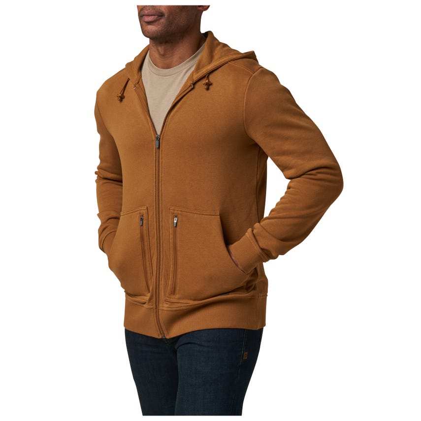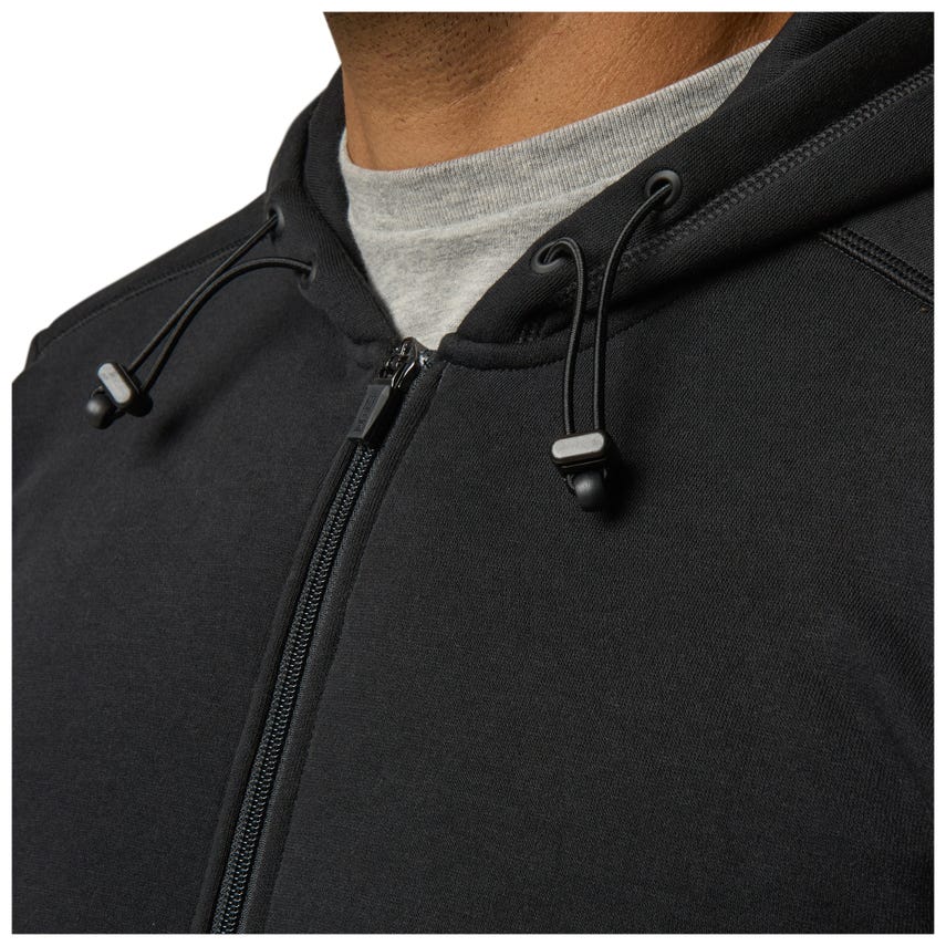 Tackle the day ahead in our Engage Fleece Full Zip 2.0. This hoodie-style jacket will serve you for years thanks to a tough, yet soft, 60-percent cotton and 40-percent polyester fleece blend. The ribbed cotton-elastane sleeve cuffs and waist help retain body heat and keep the jacket in place while you move throughout the day. A two-way zipper in the front provides easy on and off while the hood cinches down for blustery conditions. Pockets are kangaroo style with double entry and zippered outer layer.