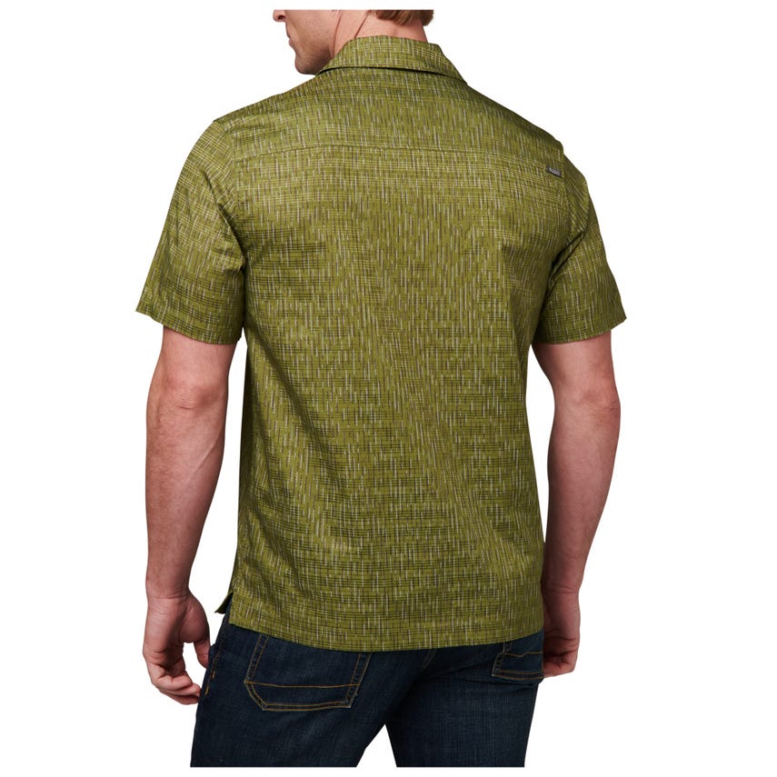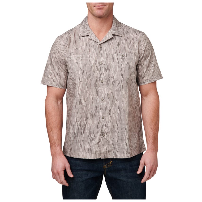 Classic camp style meets cutting-edge performance in our Rain-Tarn Short Sleeve Shirt. A pressed open collar keeps things looking fresh, while the 100-percent polyester dissolving yarn print, with Vent-Tac™ properties and wicking finish, helps you maintain your cool. Just in case the firewood needs chopping, side seam vents provide ample circulation. Button enclosures secure the chest patch pockets and a center front RAPIDraw™ placket with faux button snaps offers fast access to EDC gear. The raintarn camouflage pattern looks natural in any environment. Be ready for everything with the Rain-Tarn Short Sleeve Shirt.