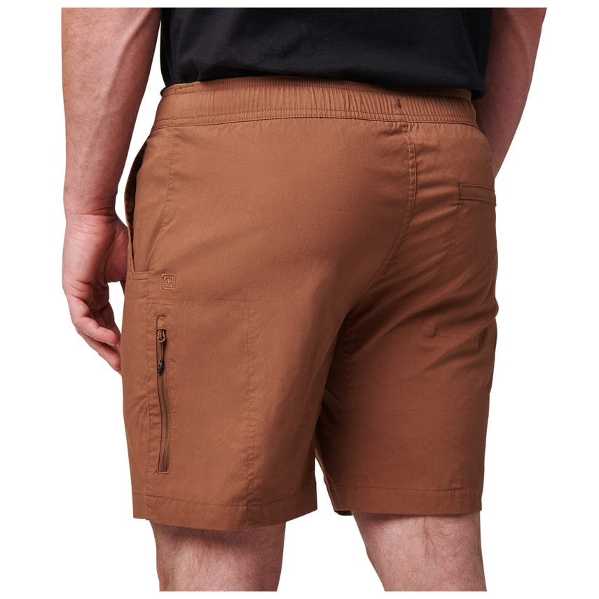Smash those strenuous Class 3 and Class 4 trails in the Hike-Amp Short. This hardcore hiking short is constructed from a lightweight yet rugged blend of 72-percent cotton, 25-percent nylon and 3-percent elastane poplin that's been peached for softness. Quick-dry properties continuously dispatch heat and perspiration throughout the day. The short's stretch fabric and running gusset makes it easy to scramble, jump and climb over obstacles. An elastic waistband with external drawcord provides a comfortable fit. Front hand pockets and a back pocket provide carry options. Store your keys and other can't-lose essentials in the zip-secured thigh pocket. And for good measure, a faux fly on the front elevates the look. Hit those hardest trails in the Hike-Amp Short.