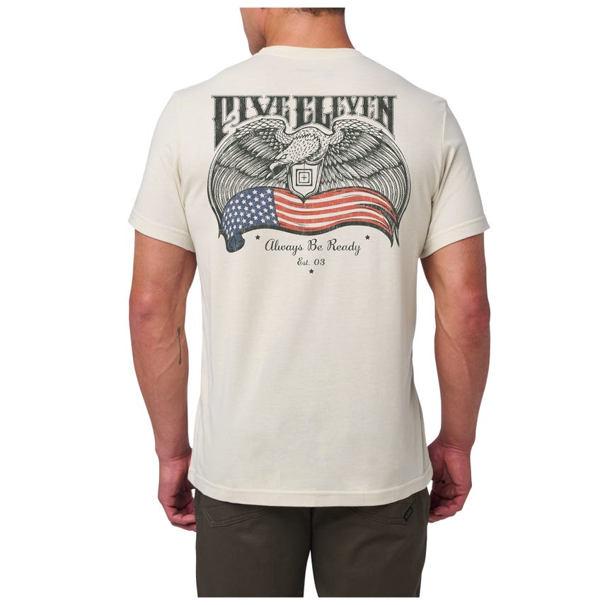 Show your patriotic spirit with the Birds And Banners Tee that screams "Always Be Ready" with a bold eagle graphic holding an emblematic banner. This tee merges style and substance with its durable, moisture-wicking cotton/poly blend, ensuring both comfort and longevity. Made for those who appreciate timeless design and lasting quality, this shirt stands as a nod to enduring resilience and readiness.