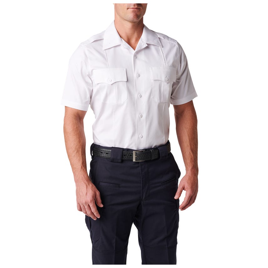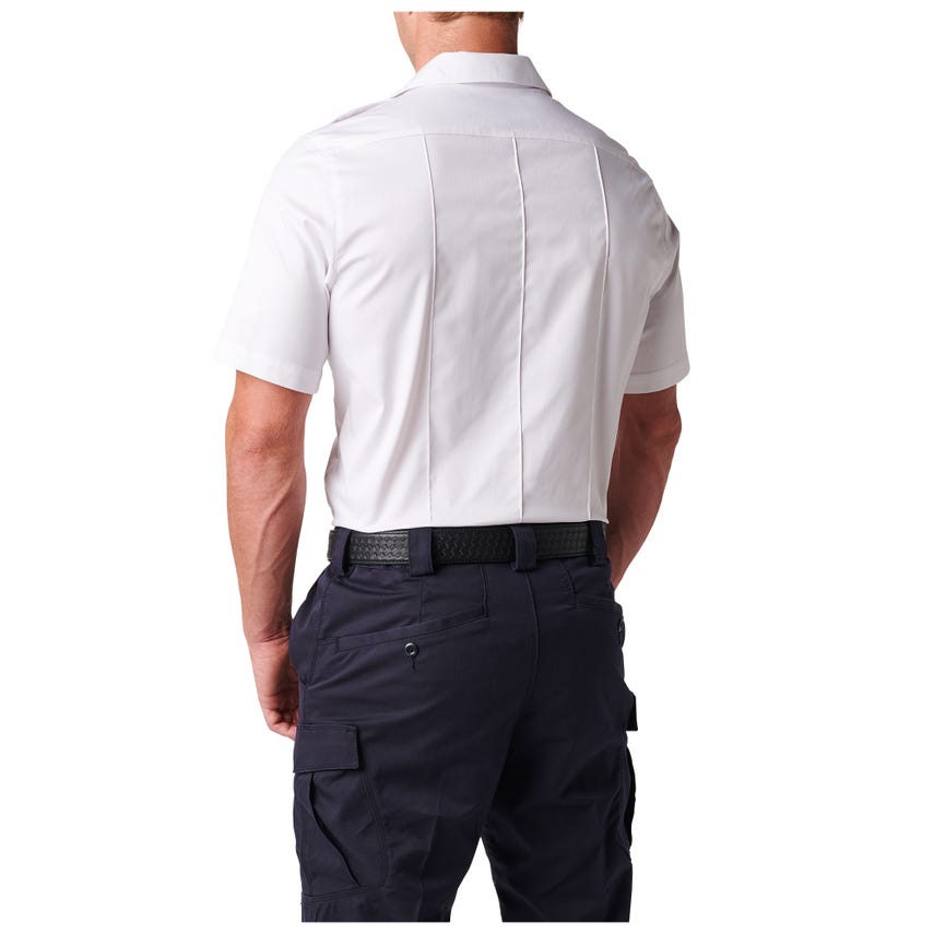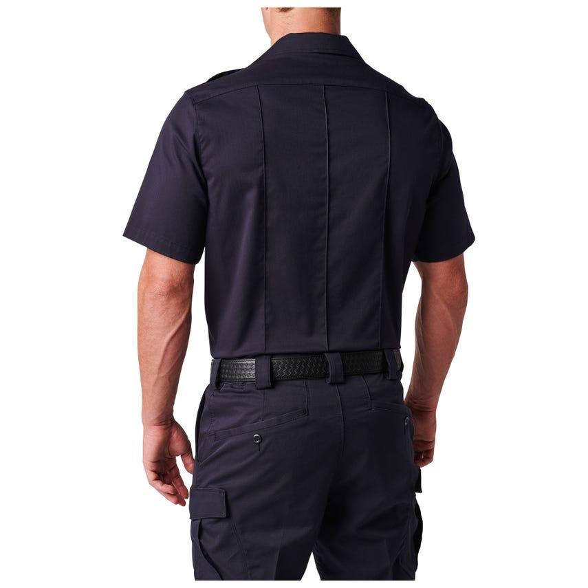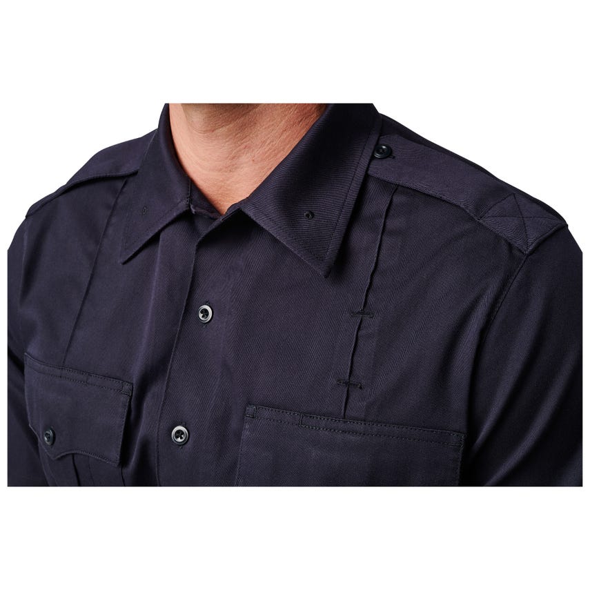 The NYPD 5.11 Stryke® Twill Shirt meets the NYPD Spec for uniform shirts and is made with 5.11's Patented Flex-Tac® mechanical stretch twill fabric for performance, durability and easy movement. Sewn-in military creases, epaulettes and scalloped chest pockets with pen guides. Button-front closure with an NYPD Approved label sewn into the front placket. Embroidery eyelets on left chest and each collar. Poly/cotton Flex-Tac® Twill is finished with Teflon™ for stain and soil-resistance.