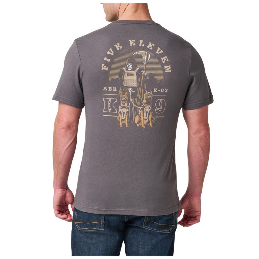 Channel the spirit of a loyal partnership with a dash of mystery in the Grim K9 Tee. Featuring a reaper flanked by two steadfast K9s, this design playfully nods to iconic duos throughout history. Made with a ringspun cotton/poly blend, this tee is both comfortable and durable, with inks that resist fading. Embrace the camaraderie and style while enjoying enduring quality in every wear.