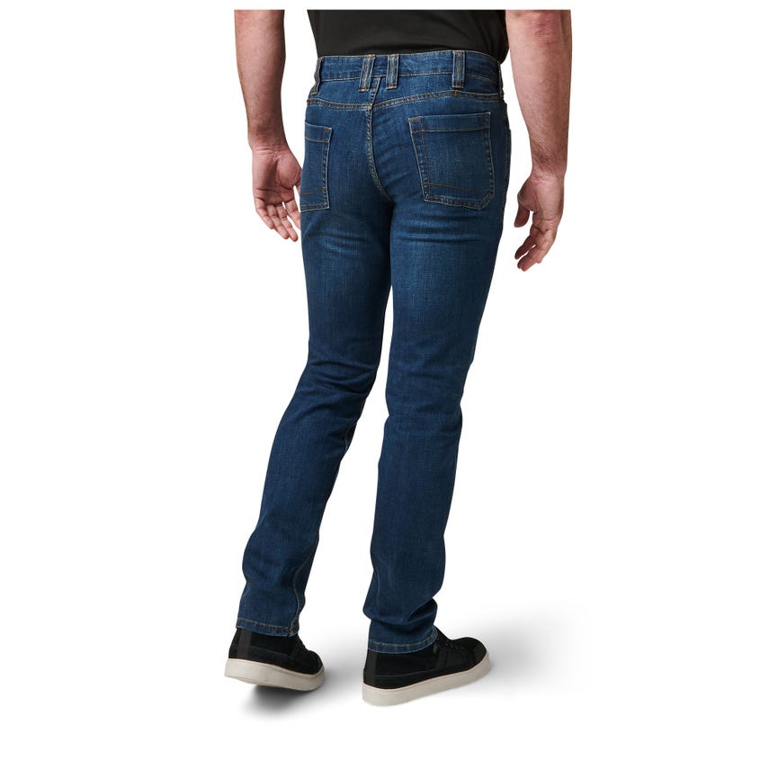 Blending in doesn't require surrendering EDC space or comfort with our Defender-Flex Jean Straight pants. Their classic, straight-cut look will fit in anywhere you go. The five-pocket style with an additional two pockets make an ideal choice when leaving critical gear behind is not an option. A non-logo, shank-button closure up front, along with non-logo rivets at the hand pockets keep things discrete. Reinforced belt loops and hand pockets reinforced with Nylon 6 increase longevity. Constructed from 76-percent cotton and 24-percent polyester with T400 mechanical stretch denim, the Defender-Flex Jean Straight will never bind on you. It's the perfect jean for a weekend in the backcountry or a night out on the town. More styles available: shop the Defender-Flex Collection.
