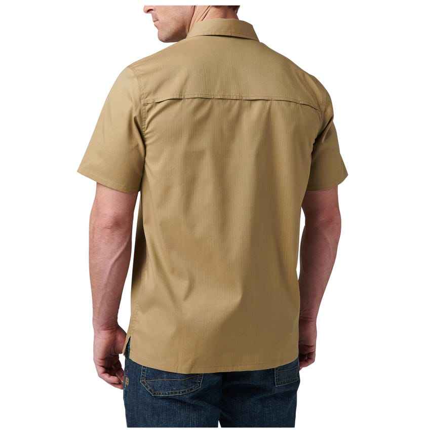 Tired of shirts that quickly surrender to the pace of your job? It's time to step up to our Landen Short Sleeve Work Shirt. This rugged build begins in a 75% polyester and 25% cotton FlexLite ripstop blend that easily withstands tough daily use. The Teflon™ finish boosts stain resistance and breathability for all-day comfort. A vented back yoke seam keeps things cool, while critical items remain close at hand and secure thanks to the button enclosures on both chest patch pockets. The fold-down collar and collar stand maintains a clean look through long shifts. No matter what you do for a living, the Landen Short Sleeve Work Shirt has the grit you need to get the job done.