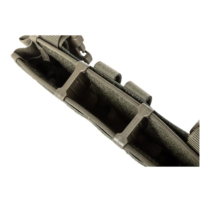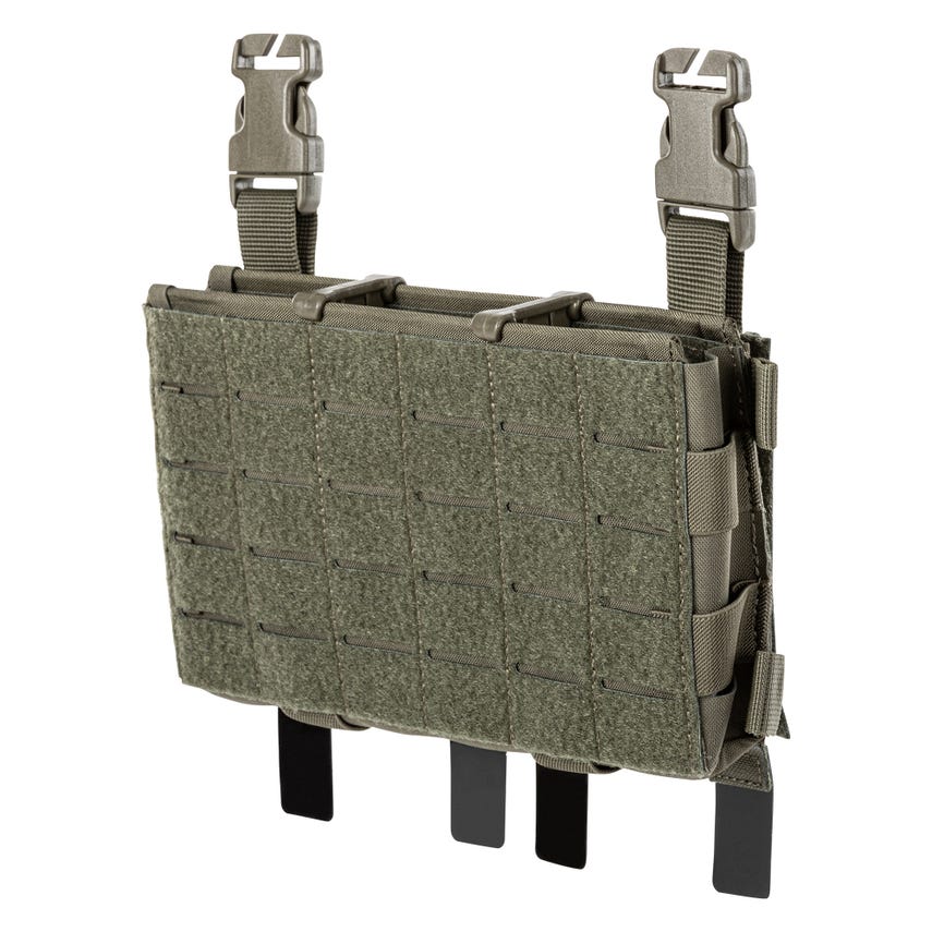 The Patent Pending Smart Track System is a dual-rail construction with removable and adjustable custom dividers and bungee retention kits to provide a secure fit and retention for contents. The interior of the placard is also loop lined and compatible with hook compatible inserts including the divider, flap and zipper top from the Modular Mini Pouch (56835). Fits three AR/5.56 magazines or two AK/7.62 mags or other equipment.