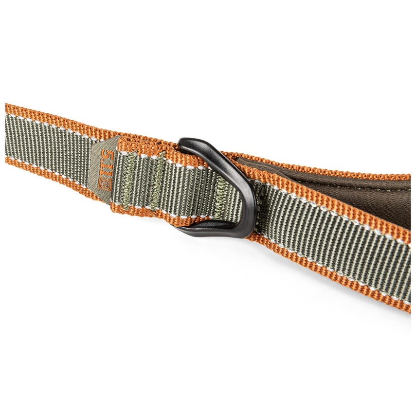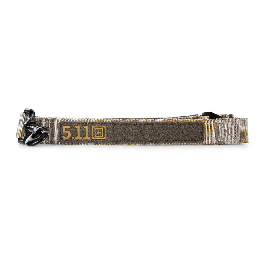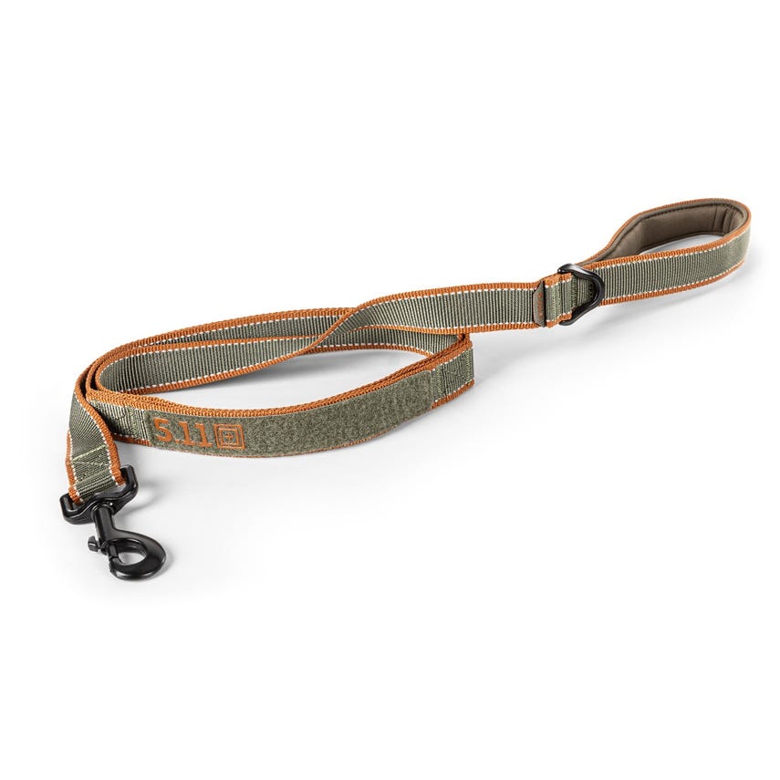 The Mission Ready™ Dog Leash is a 5' length working lead with a padded neoprene end handle and a secondary web handle near the hook end for closer control. At the base of the padded handle is an accessory V ring for the ubiquitous "to go" bags and a loop panel on the back of the web handle for nametape.