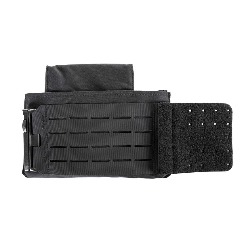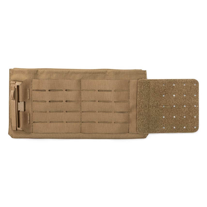 Built to accommodate IIIA soft armor plus the option of hard plates, the QR Plate Carrier Soft Armor Cummerbund is constructed with 500D nylon and Tac-Lam™ laminated laser-cut MOLLE material. The QR Plate Carrier Soft Armor Cummerbund attaches to the front of the QR Plate Carrier Base with our Patented Sierra Bravo® Slide quick release buckle and includes a 2" overlap at the front for coverage between the plate carrier and cummerbund. The cummerbund attaches to the rear with large hook and loop panels that layer up with full-width hook and loop panels for a secure fit. Additionally, the cummerbund can be secured with paracord through the laser-cut holes as a secondary securing system.