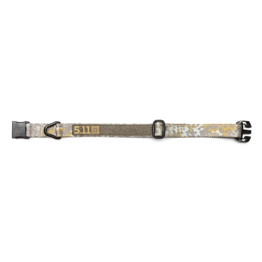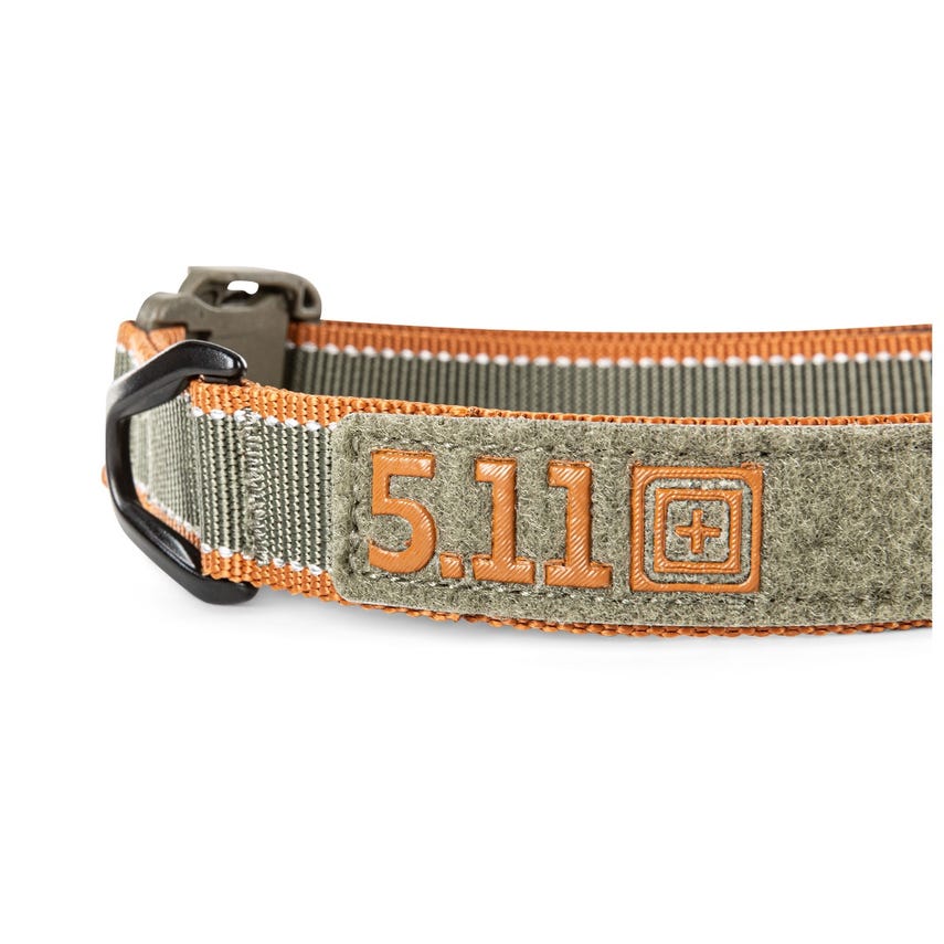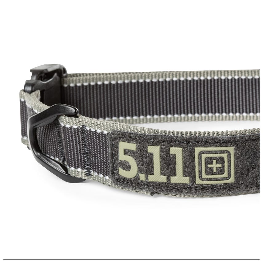 The Mission Ready™ Dog Collar offers a functional and featured option for your canine companion with rugged nylon webbing and proven Duraflex® side release buckle. The collar features a 5.11 branded loop panel for your pup's nametape and an aluminum V ring for leash/ID attachment. Available in three sizes with the small using 3/4" webbing and the other sizes crafted from 1" webbing. All use reflective threads for added visibility.