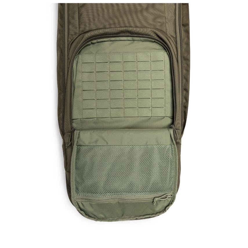- Front pocket with loop faced laser-cut MOLLE platform and zippered mesh pocket