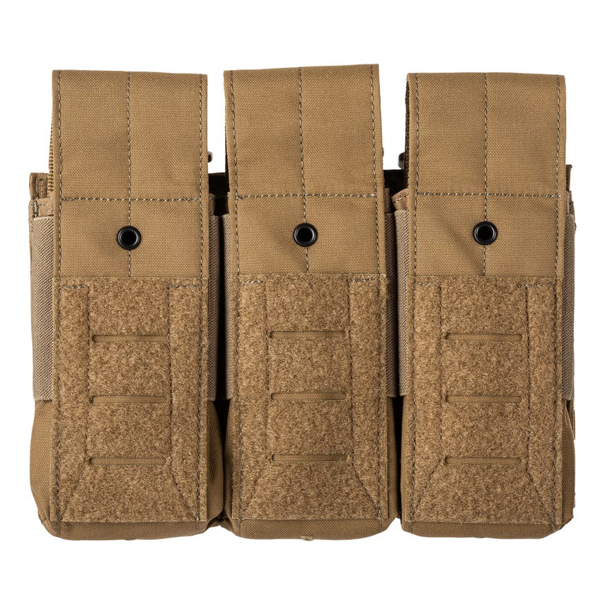 The Flex Triple AR Mag Cover Pouch. Yeah, you heard right. Three mags at the ready when every shot counts. Equipped with Flex-HT™ technology for mounting versatility and easy weaving to all platforms. The waterproof TPU coated straps and the double layer of 500D nylon on the front and bottom add extra durability. Our Pouch Bungee Kit (sold separately) can be added for additional retention options. The fine details have not been forgotten with a drain hole in the bottom panel, Duraflex® G.C. snap, and a 500D nylon webbing cover with a Hypalon® pull tab. The elastic compression sides hold all your mags in place and makes for an easy change when you're empty.
