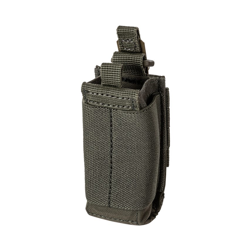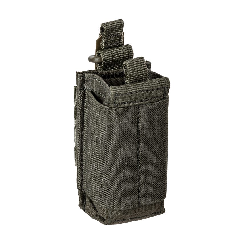 Sometimes the Always Be Ready lifestyle calls for an extra mag. The Flex Single Pistol Pouch 2.0 is there to secure that mag for you. The height of the mag pouch is now shorter and held by a high strength PC compression insert so no bungees or straps slow your reload time. The Flex-HT™ stacked webbing on back provides mounting versatility and the TPU coated straps make for easy weaving to all platforms. A double layer of N500D nylon and webbing on front and bottom provide extra durability. Imported.