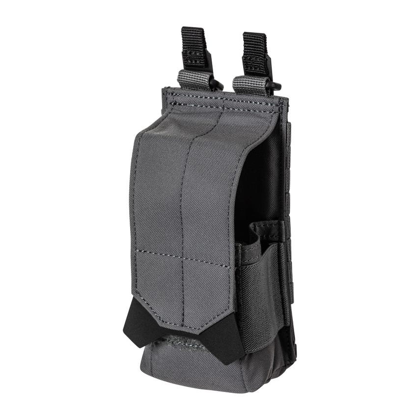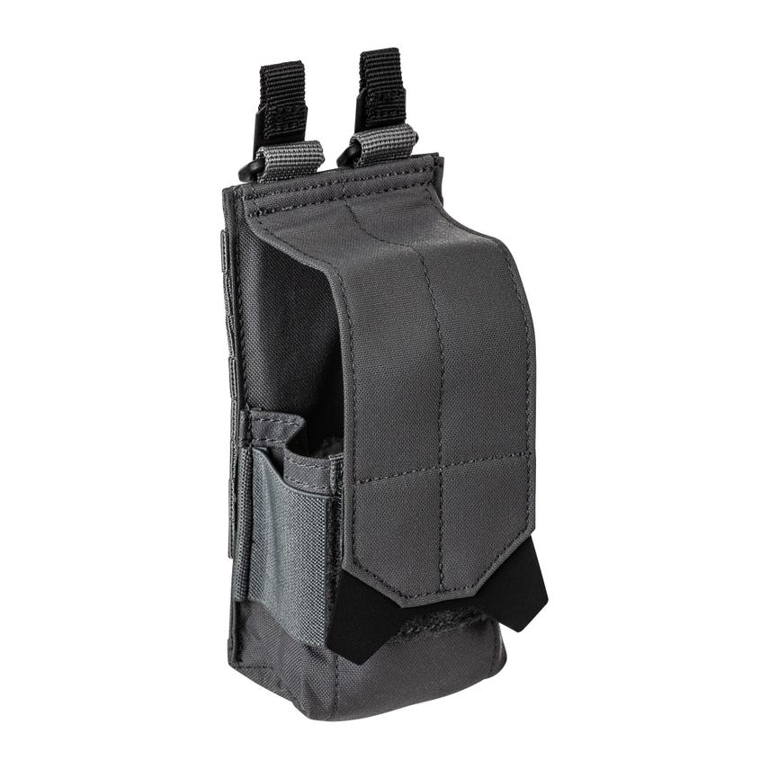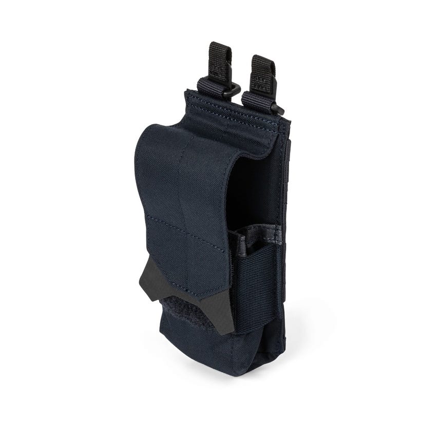 Our Flex Flash Bang Pouch is designed to cradle and protect those stunningly effective devices. The pouch holds standard-sized flash bangs securely with an elastic band retention and a cover flap with a durable underside webbing and Hypalon® pull tab. The Flex Flash Bang Pouch is constructed from befittingly tough N500D nylon and includes an internal webbing reinforcement to make this pouch last a lifetime. Mount the pouch on any MOLLE or HEXGRID® platform with the FLEX-HT™️ Mounting System. Imported.